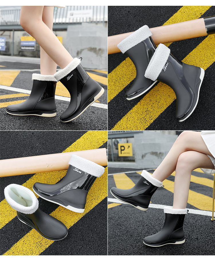 대외 무역 일본 패션 레인 슈즈 여성 겨울 미끄럼 방지 물 신발 워터 부츠 짧은 비 부츠 주방 신발 고무 신발 조수 도매