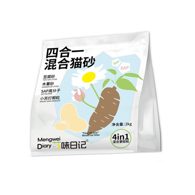 • 멍웨이 다이어리 4-in-1 혼합 고양이 모래 2kg 봉지