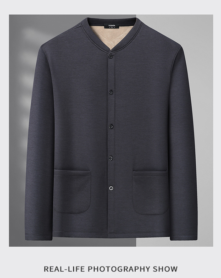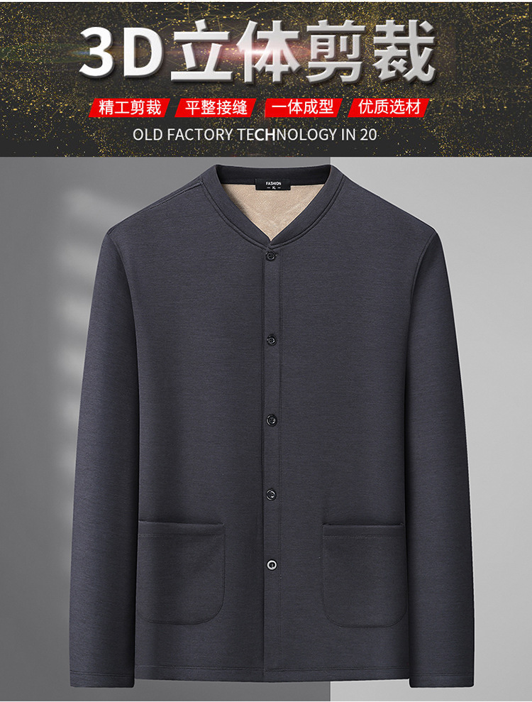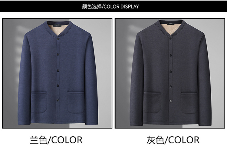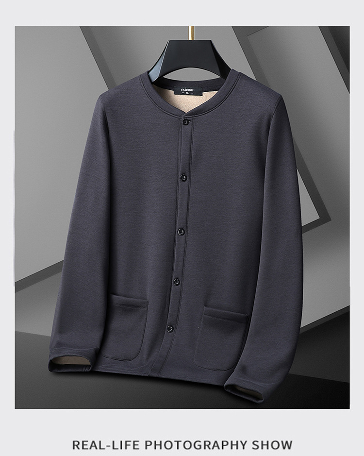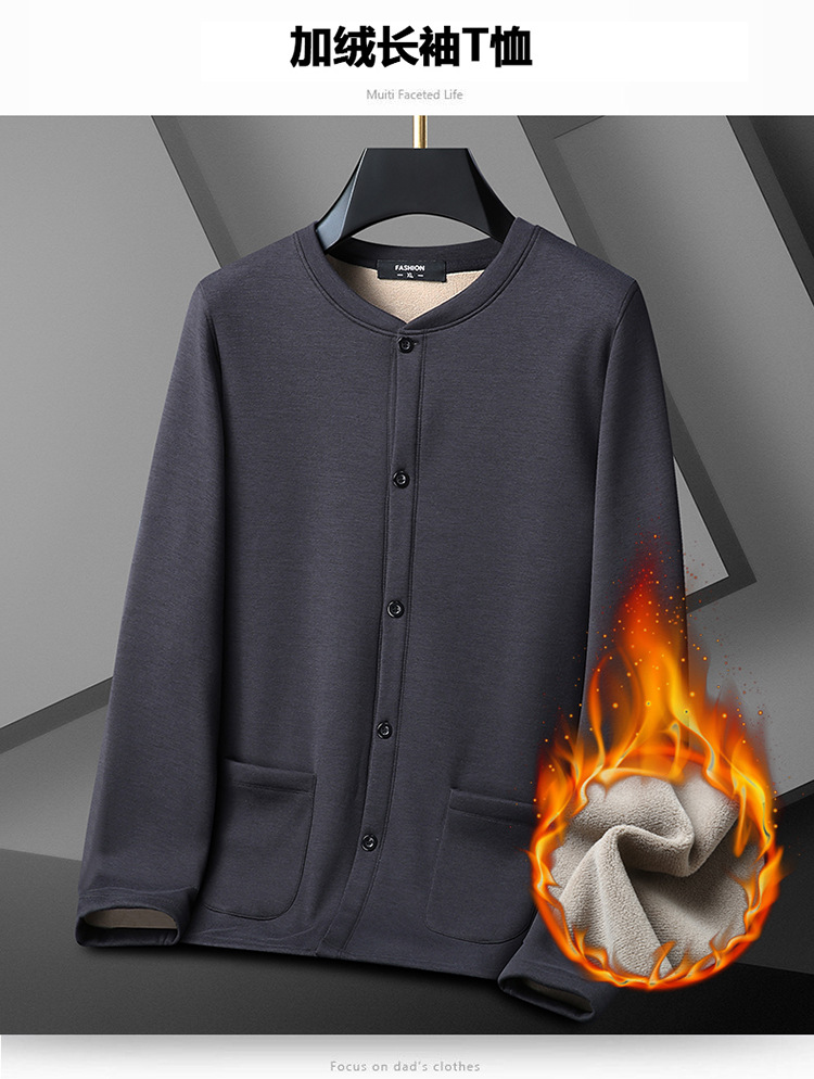 통통한 남자 가을과 겨울 새로운 남자의 초대형 크루 넥 기모 가디건 스웨터 남자의 중년 지방 재킷