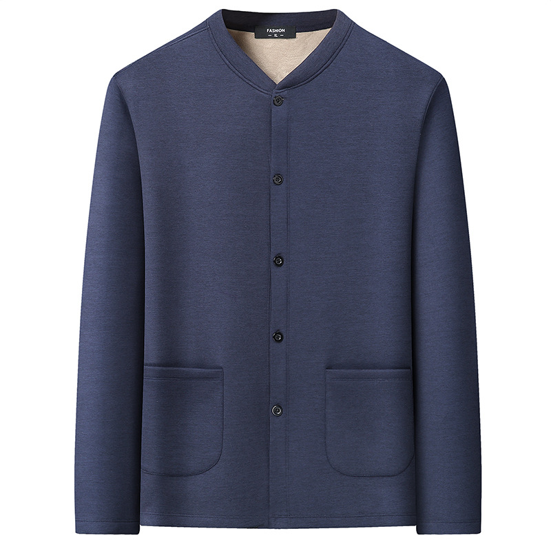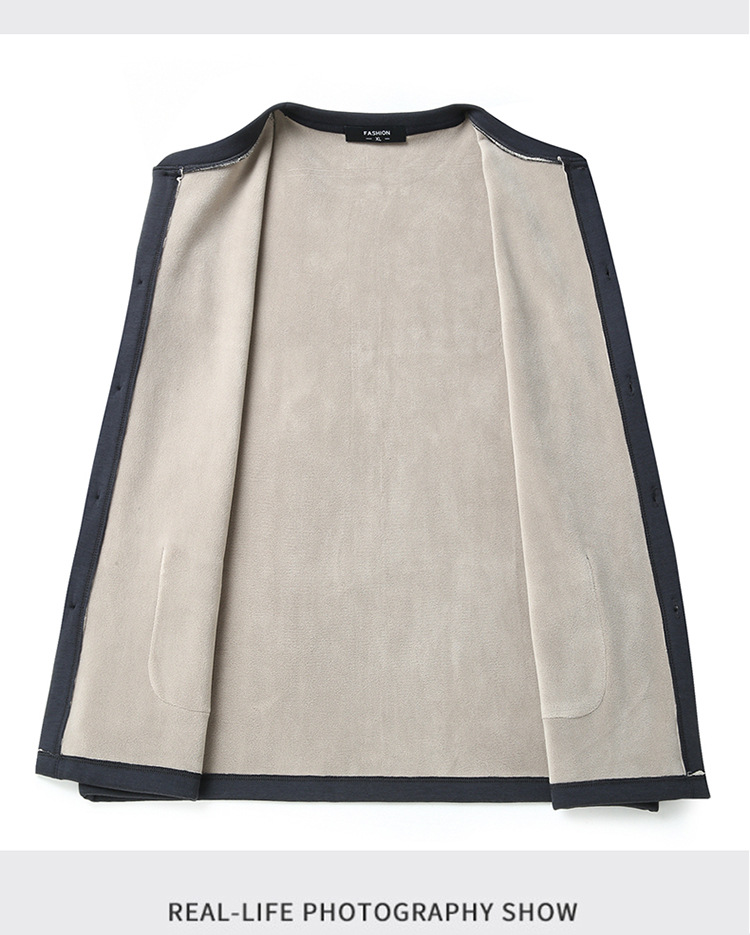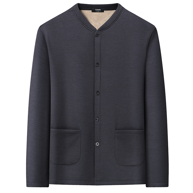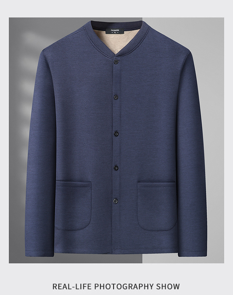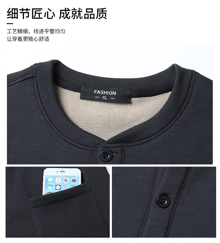 통통한 남자 가을과 겨울 새로운 남자의 초대형 크루 넥 기모 가디건 스웨터 남자의 중년 지방 재킷