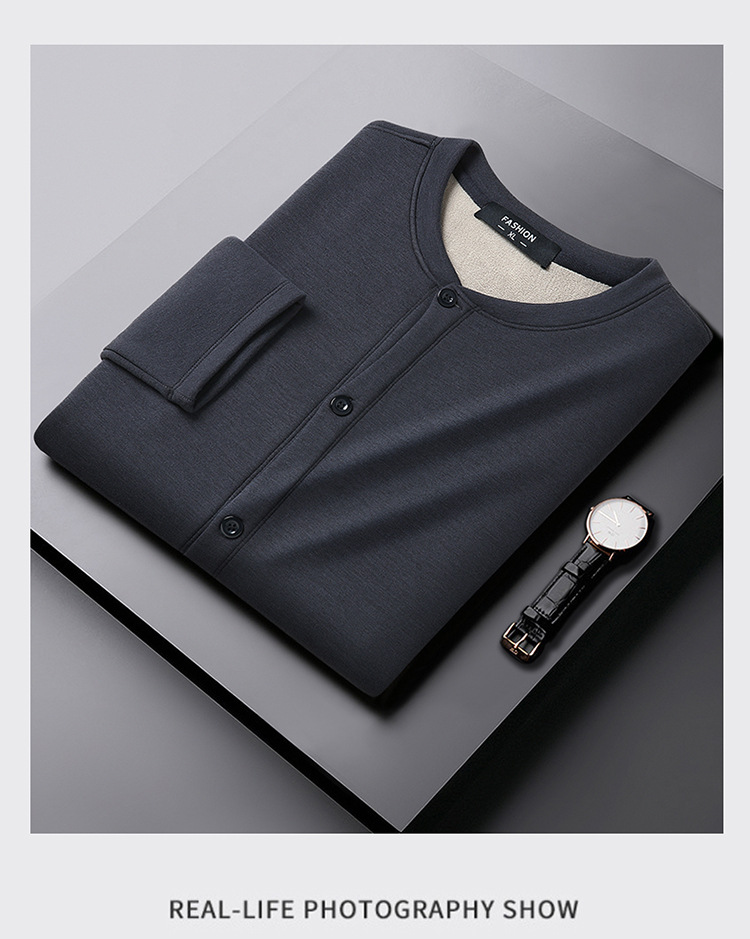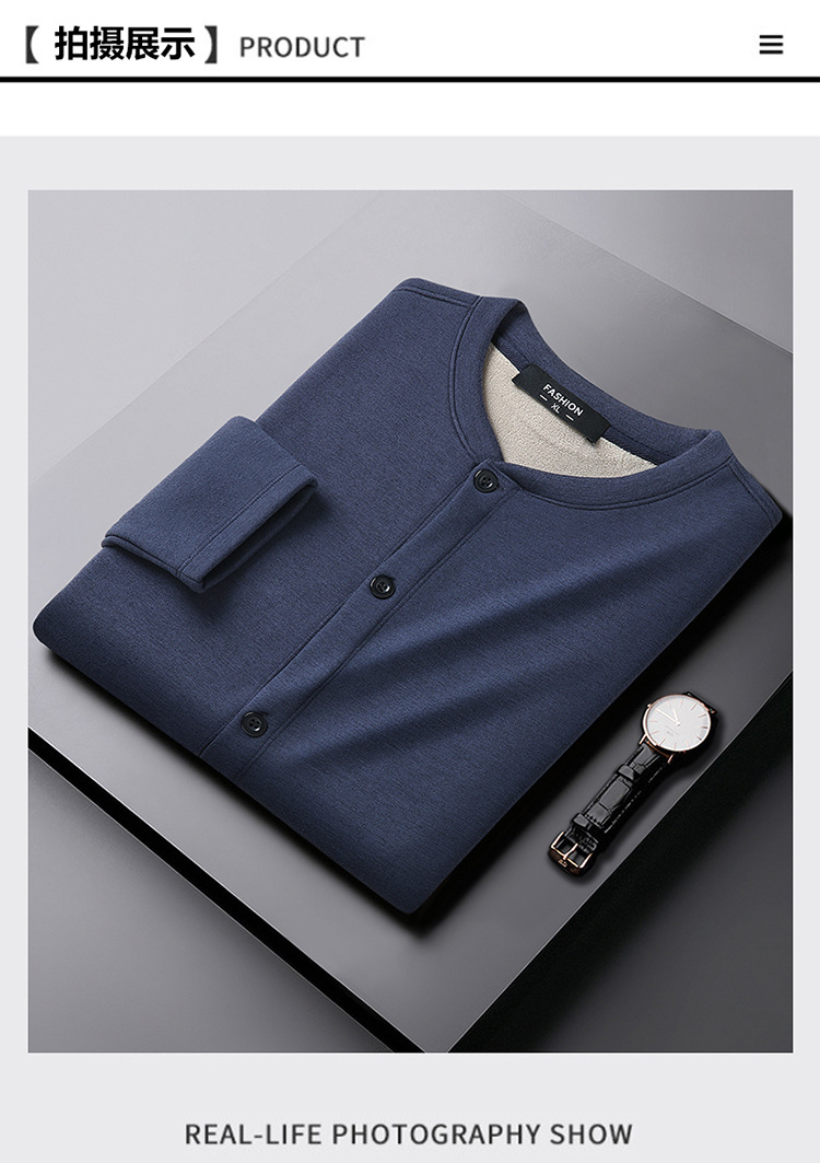 통통한 남자 가을과 겨울 새로운 남자의 초대형 크루 넥 기모 가디건 스웨터 남자의 중년 지방 재킷스토어 가기