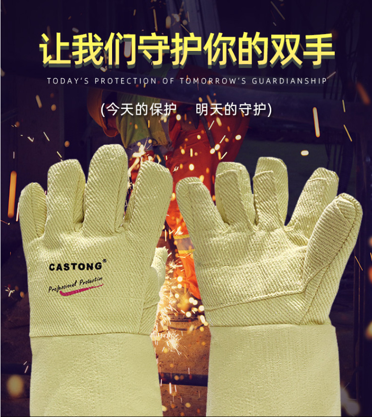 카스톤 1000 도 YAAE-5T 고온 저항 장갑 내화 두꺼운 단열 산업 오븐 화상 방지 장갑스토어 가기