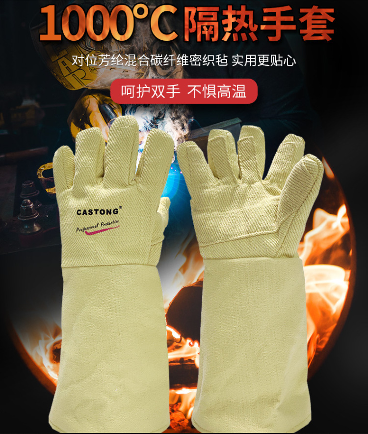 카스톤 1000 도 YAAE-5T 고온 저항 장갑 내화 두꺼운 단열 산업 오븐 화상 방지 장갑