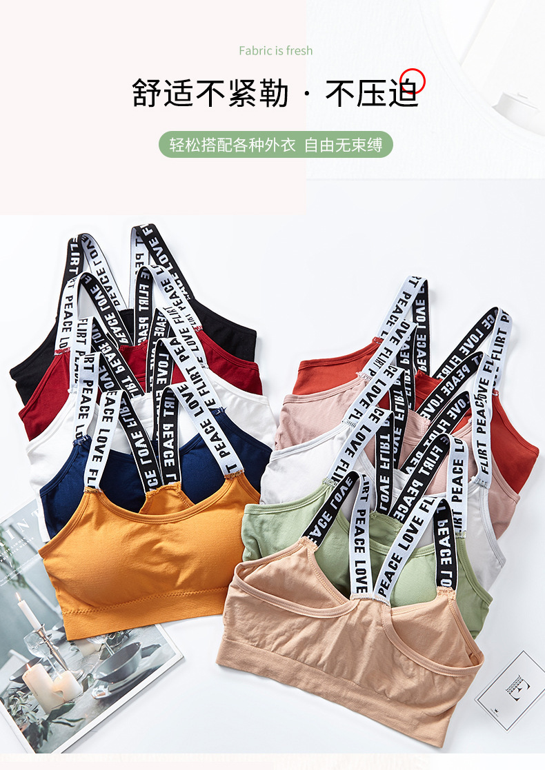 레터 프린트 뷰티백 탑, 가슴 패드 내장, 여성용 이너웨어, 푸쉬업, 스포츠 브라, 탑, 브라