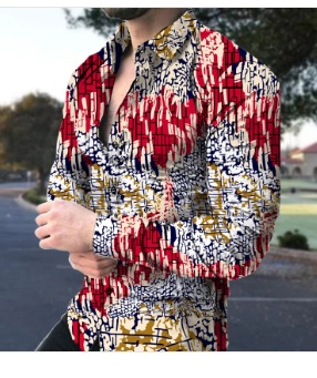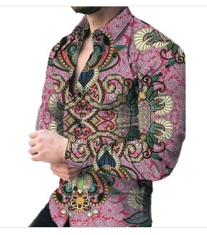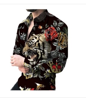 국경 간 독립국 구미 패션 레트로 플라워 패턴 디지털 인쇄 남성 긴팔 셔츠 대외 무역 공급스토어 가기