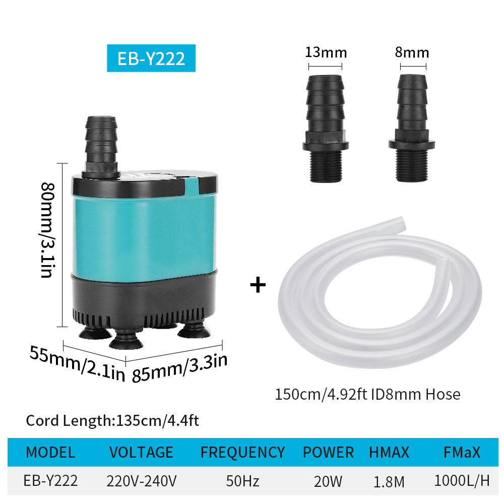 注:1、将水泵平放在水里,水中高度以没过水泵为宜,以免缺水烧毁,接通电源即可。若使用过程中出现故障,请尽快切断电源,离水后才能检修。