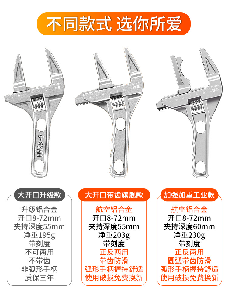 욕실 렌치 다기능 이동식 대형 오프닝 작은 조정 가능한 보드 짧은 핸들 이중 목적 조정 가능한 렌치 공구 물 전기스토어 가기