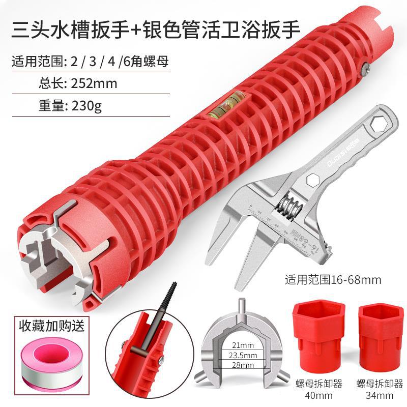 • 8-in-1 욕실 렌치 + 대형 오픈 욕실 렌치 9 (치아 포함)
