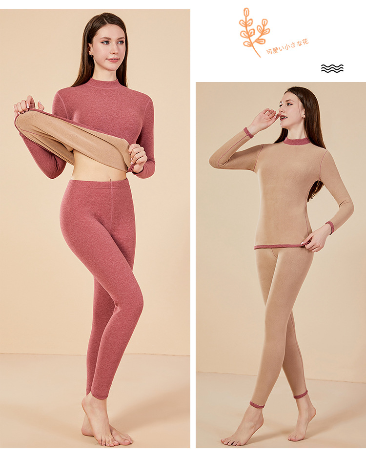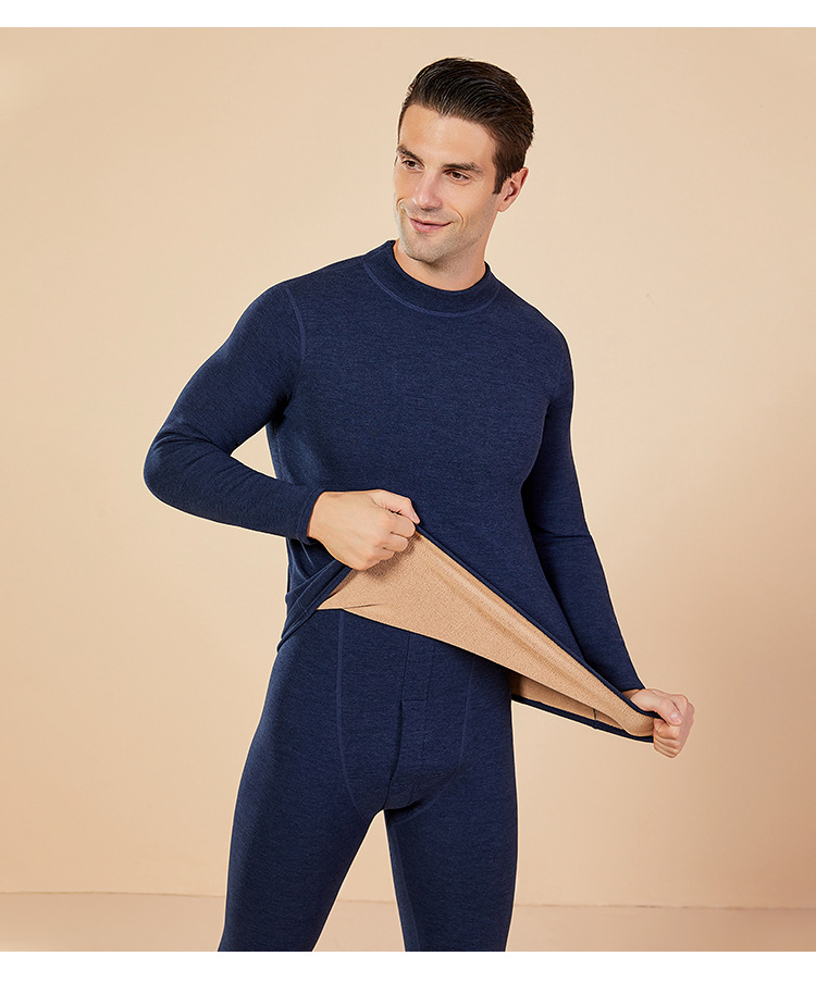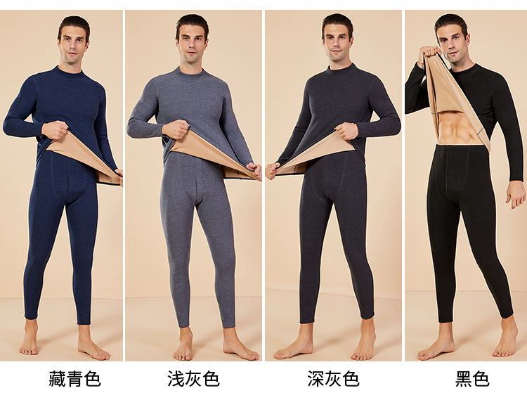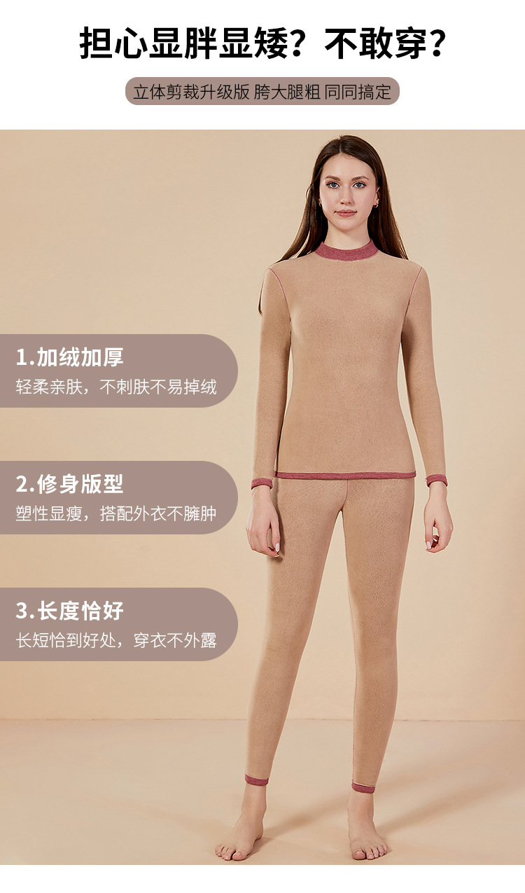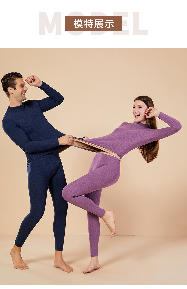 보온 내의 신상 양털 가을옷 세트, 두꺼운 보온 기능, 큰 사이즈, 반목 칼라, 남녀 커플 세트스토어 가기