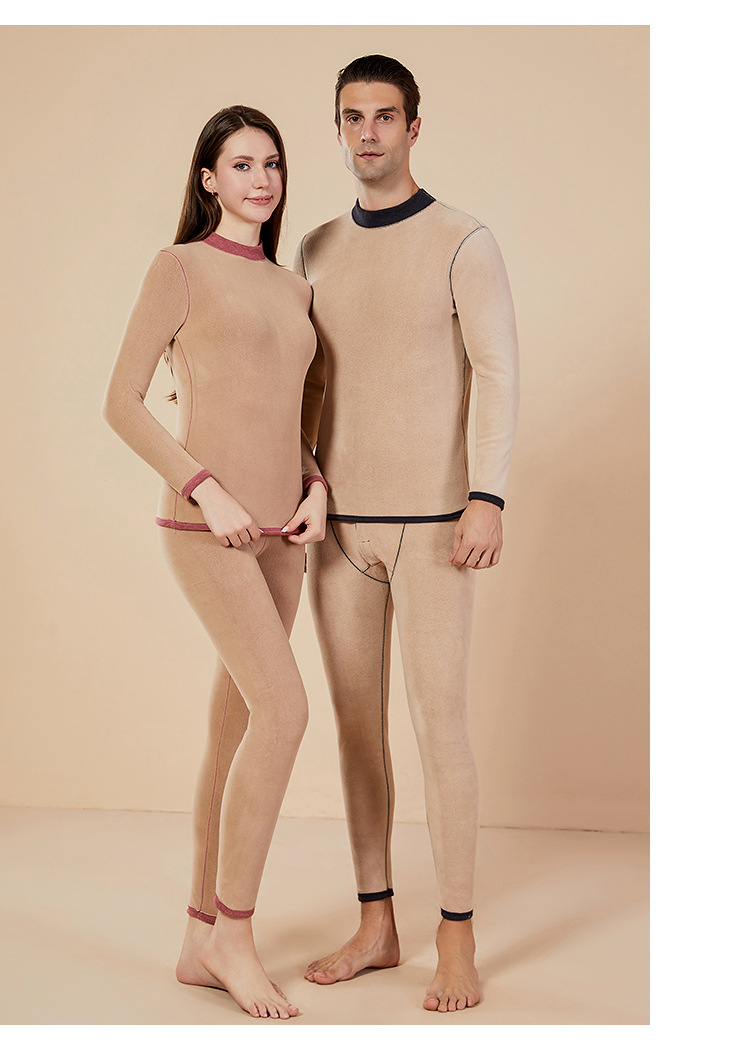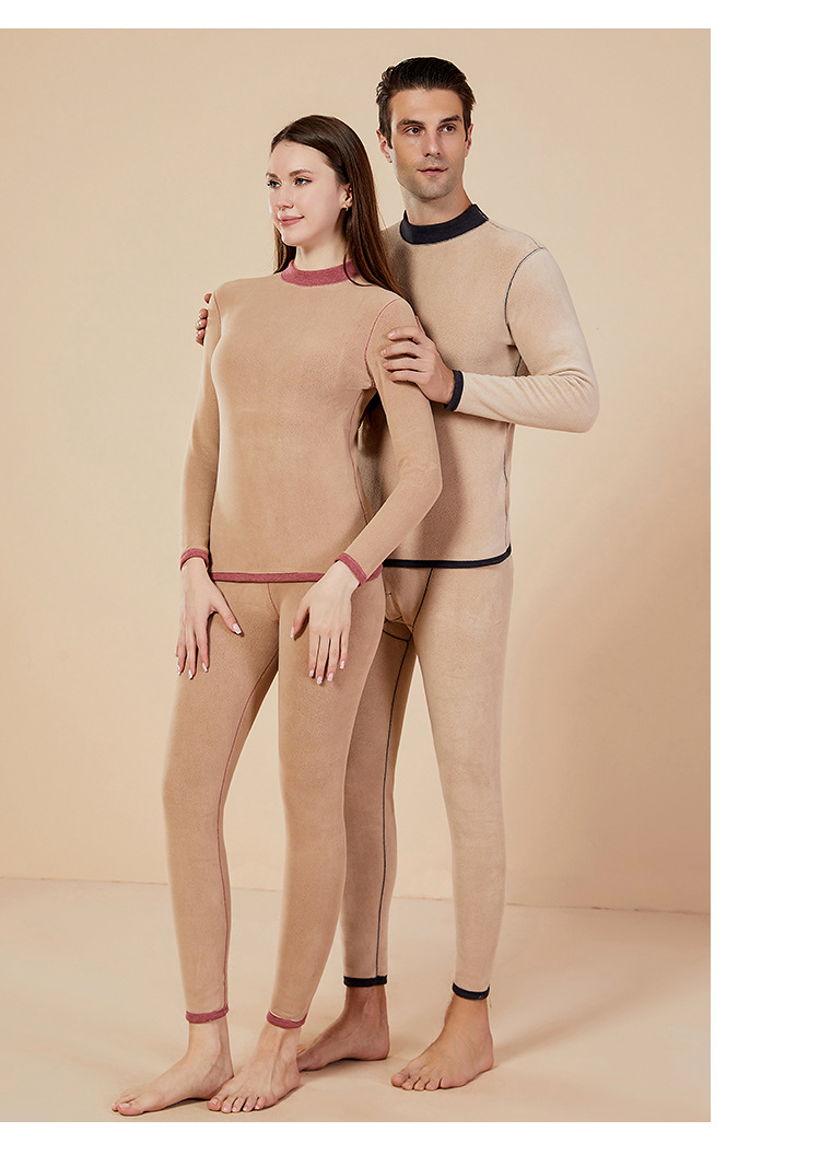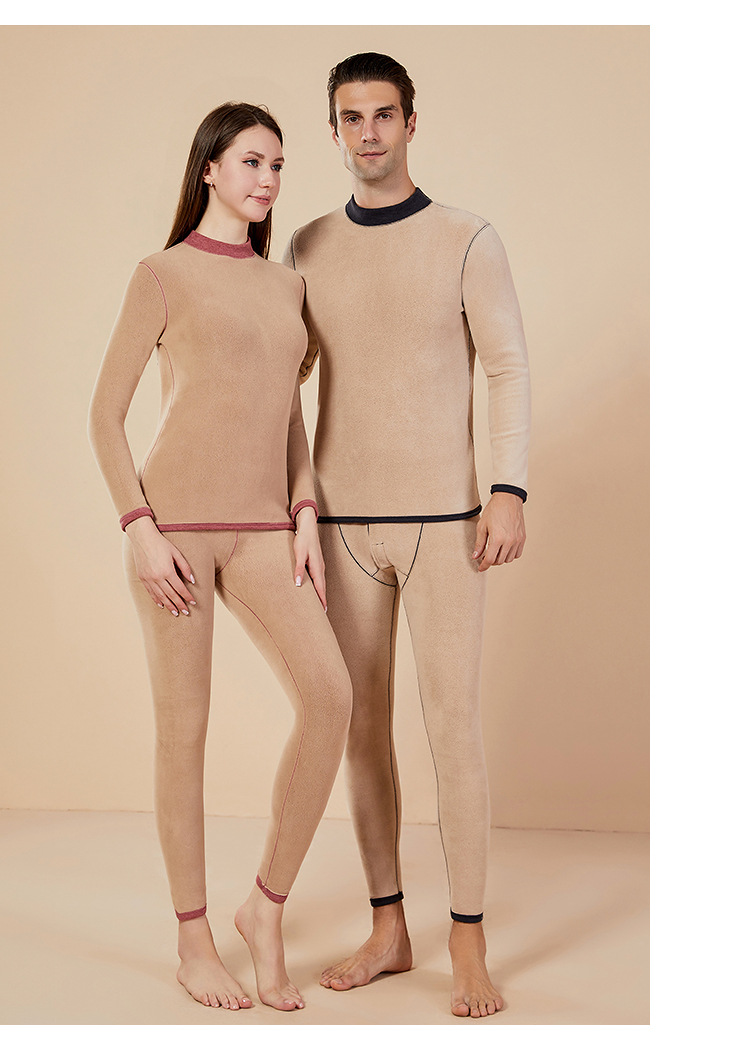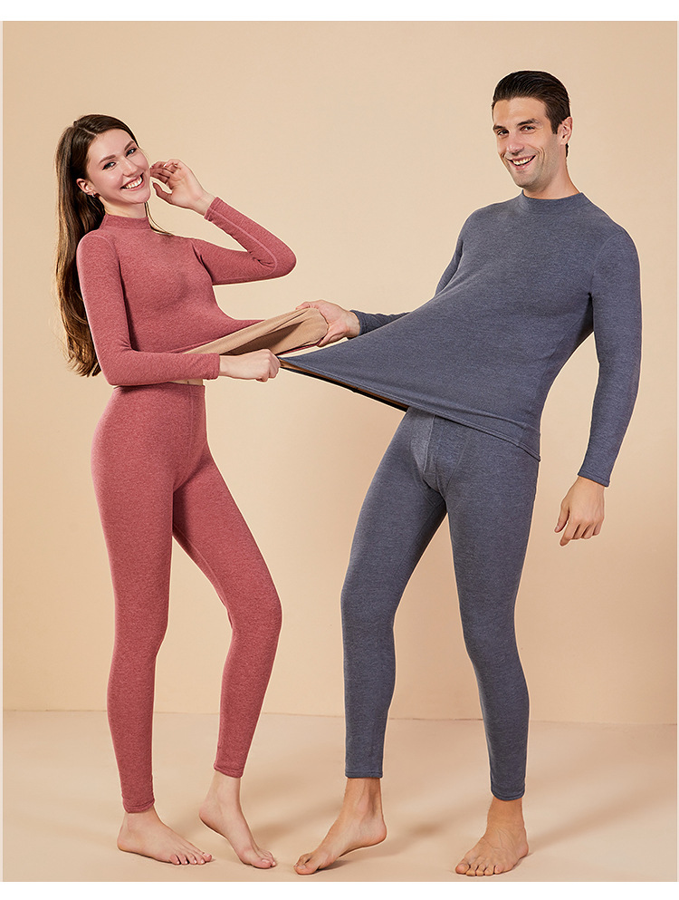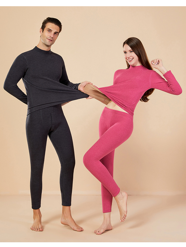 보온 내의 신상 양털 가을옷 세트, 두꺼운 보온 기능, 큰 사이즈, 반목 칼라, 남녀 커플 세트