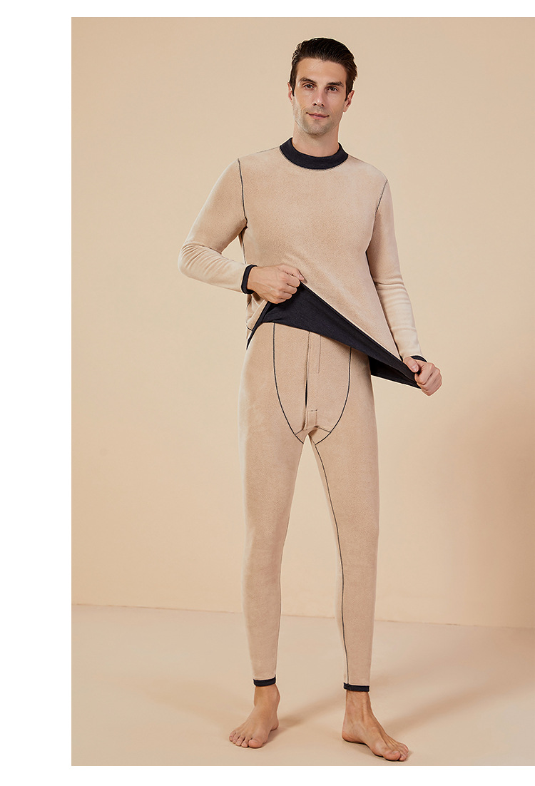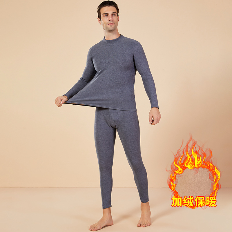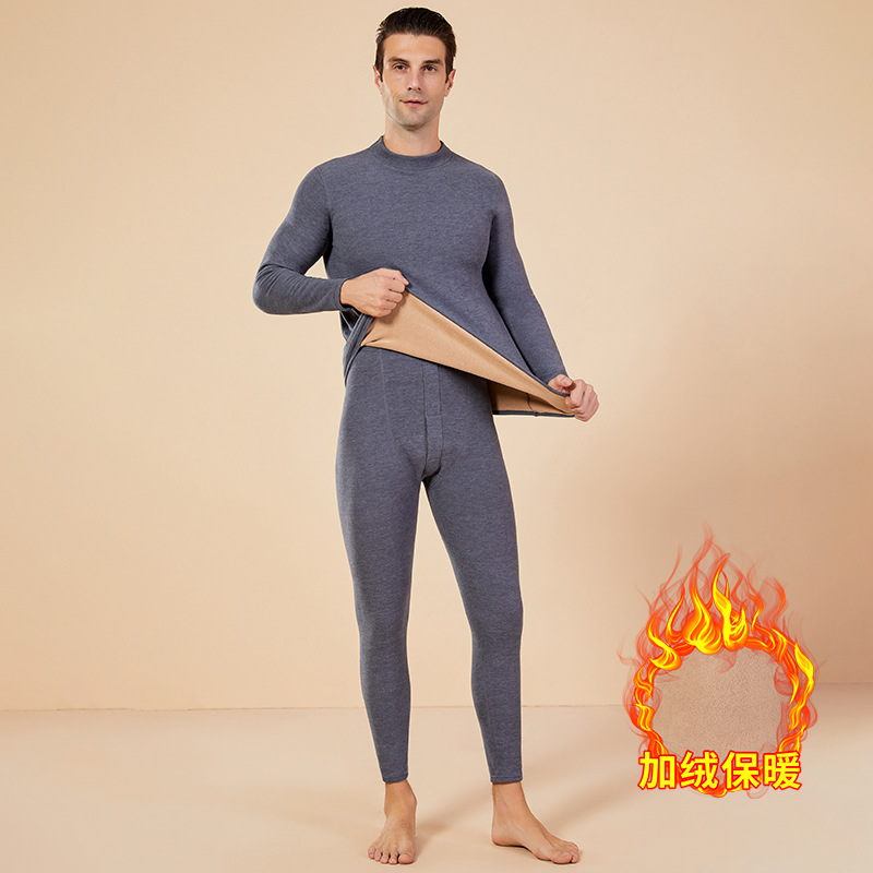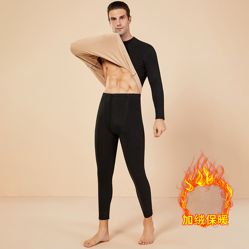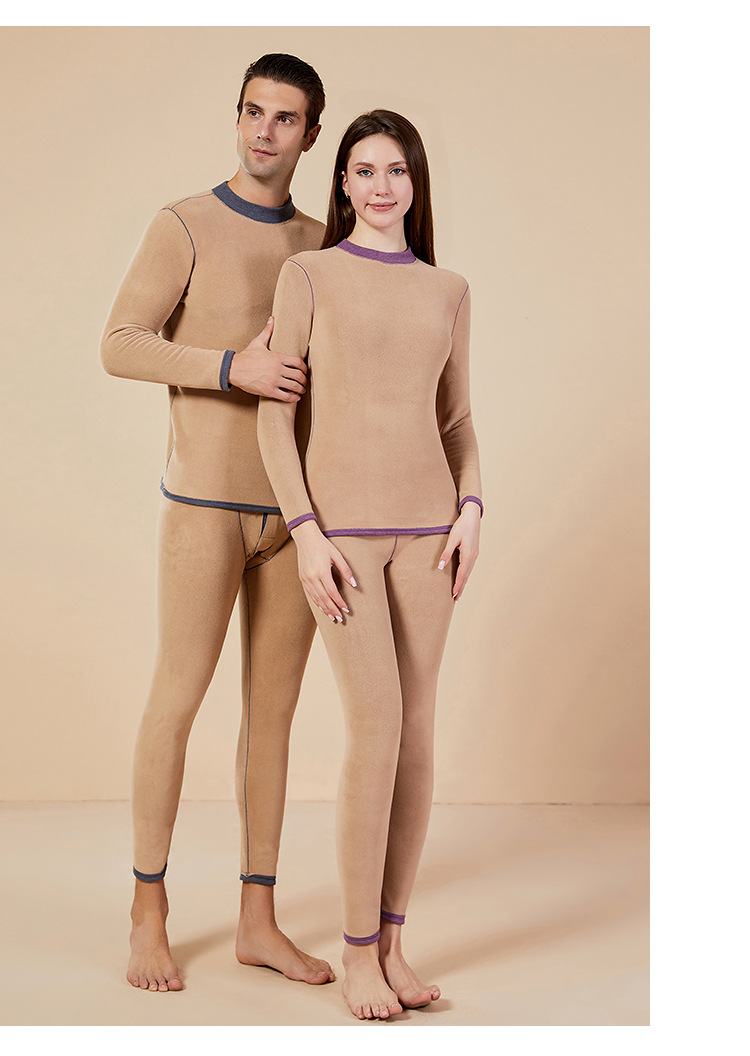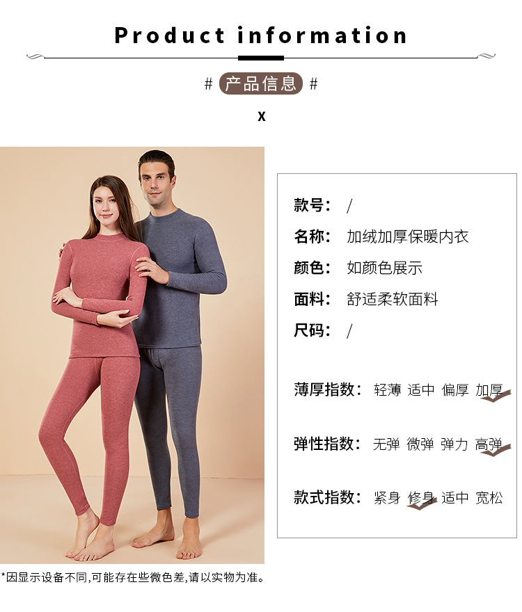 보온 내의 신상 양털 가을옷 세트, 두꺼운 보온 기능, 큰 사이즈, 반목 칼라, 남녀 커플 세트