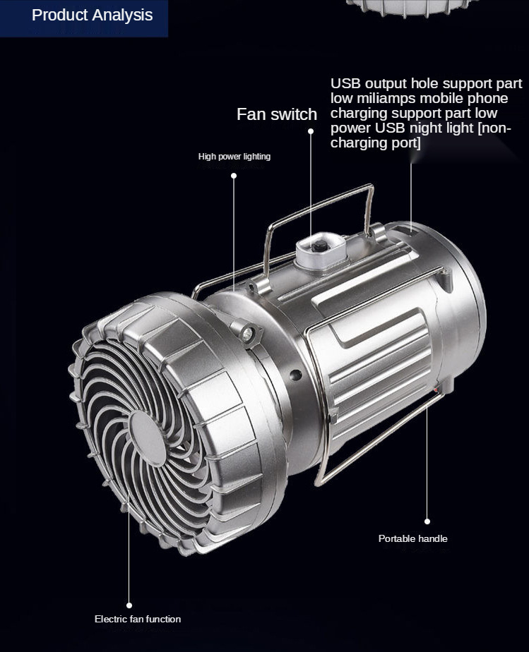 特点:可太阳能充电强力风扇/USB输出支持部分手机充电和小功率USB夜灯