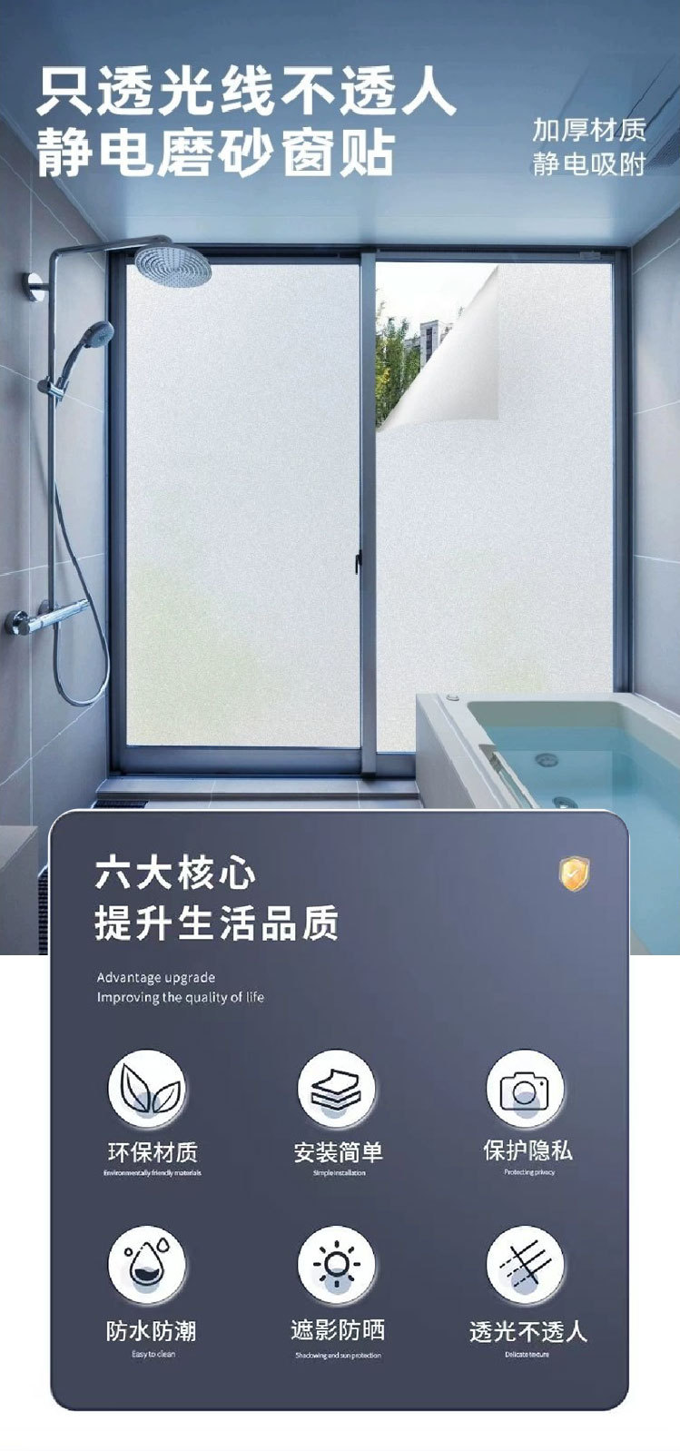 정전기 젖빛 유리 필름 가정용 욕실 엿보기 방지 젖빛 유리 필름 차양 단열 창 유리 스티커스토어 가기