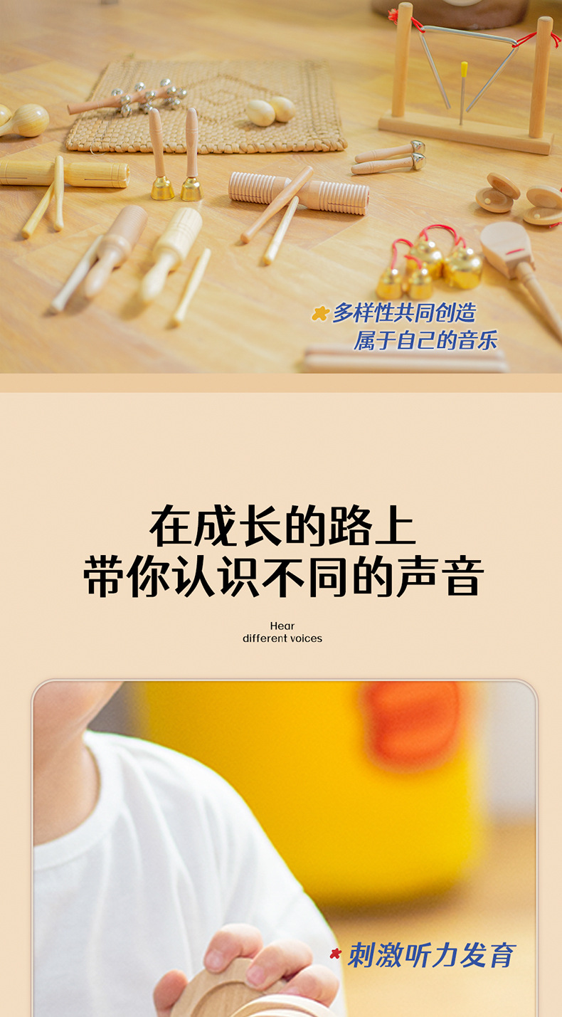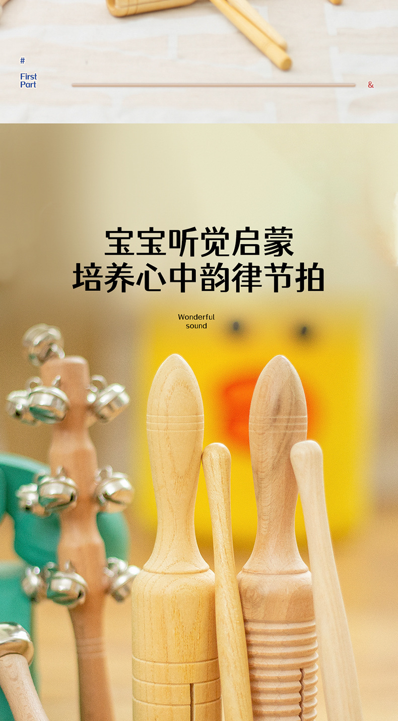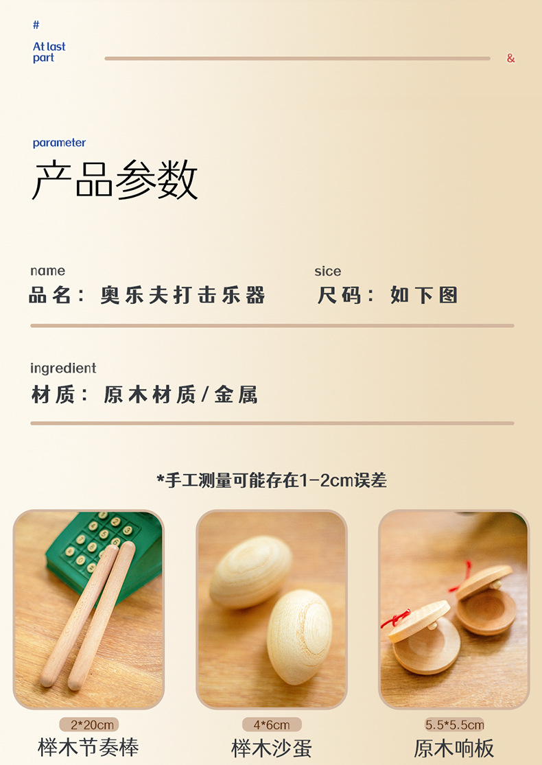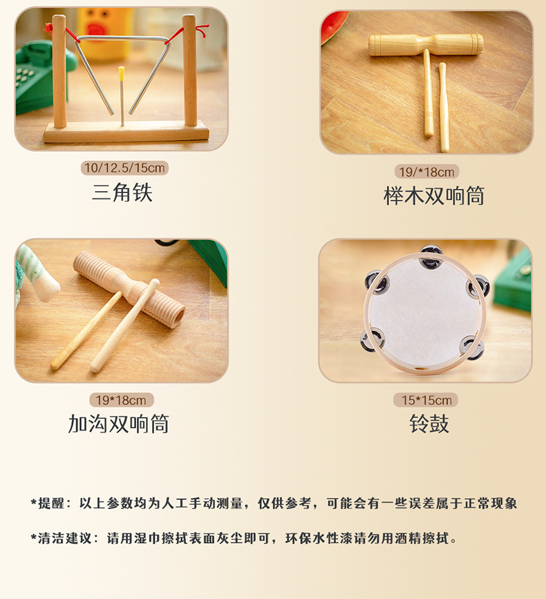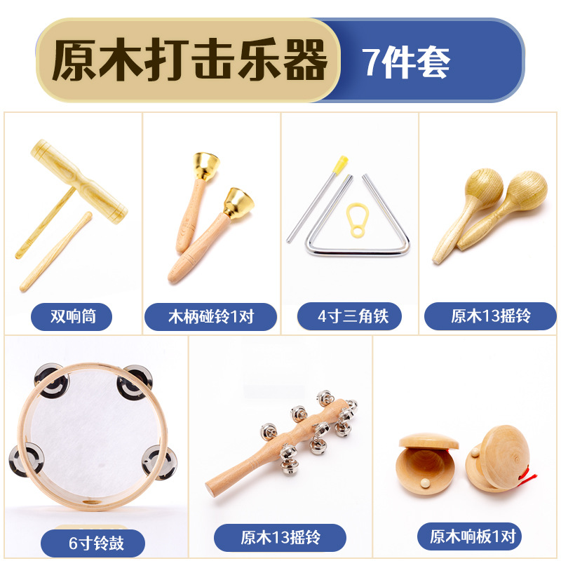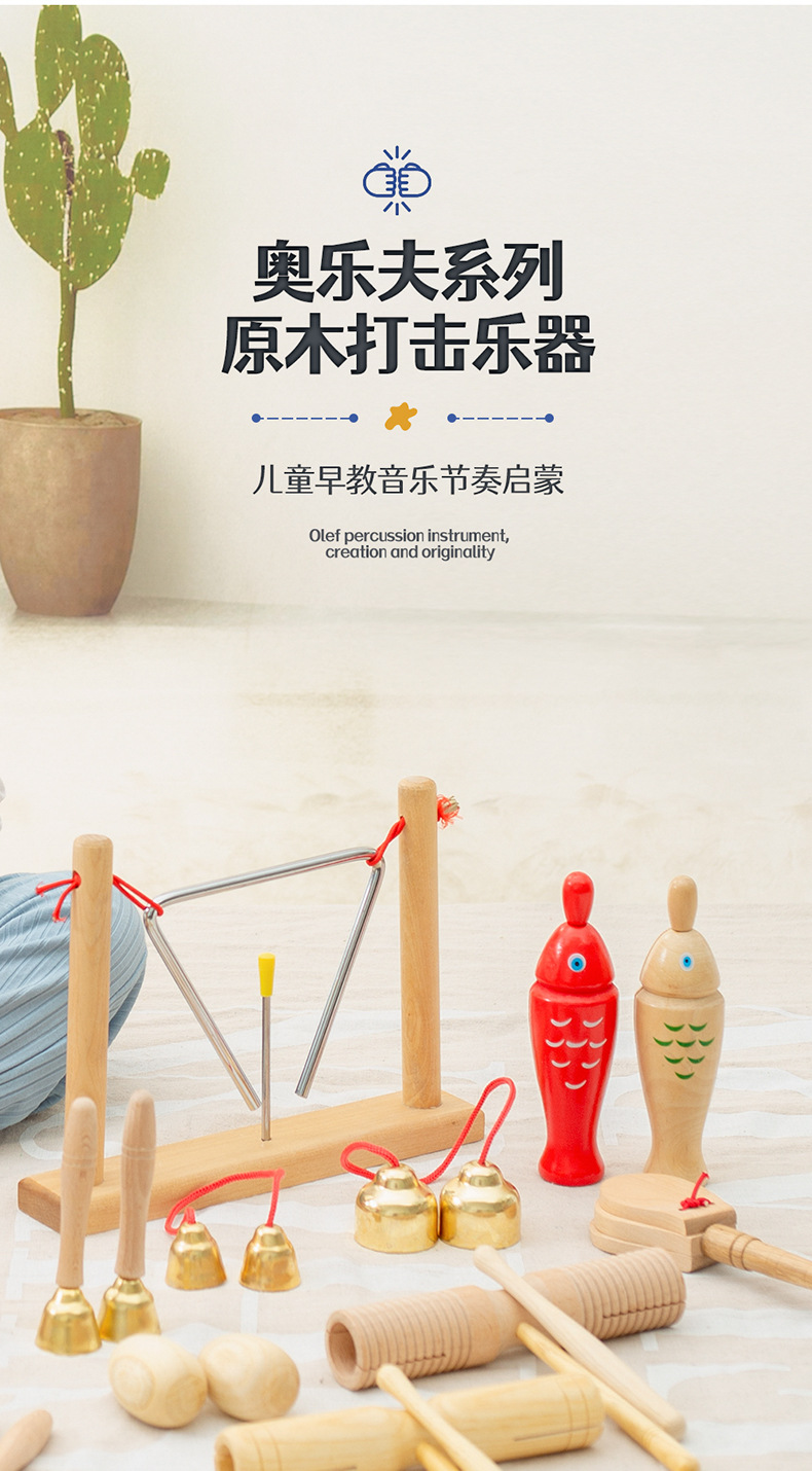 Orff 타악기 로그 세트 교구 보조 터치 나무 물고기 사운드 보드 모래 망치 계란 손목 탬버린 삼각형 더블 링스토어 가기