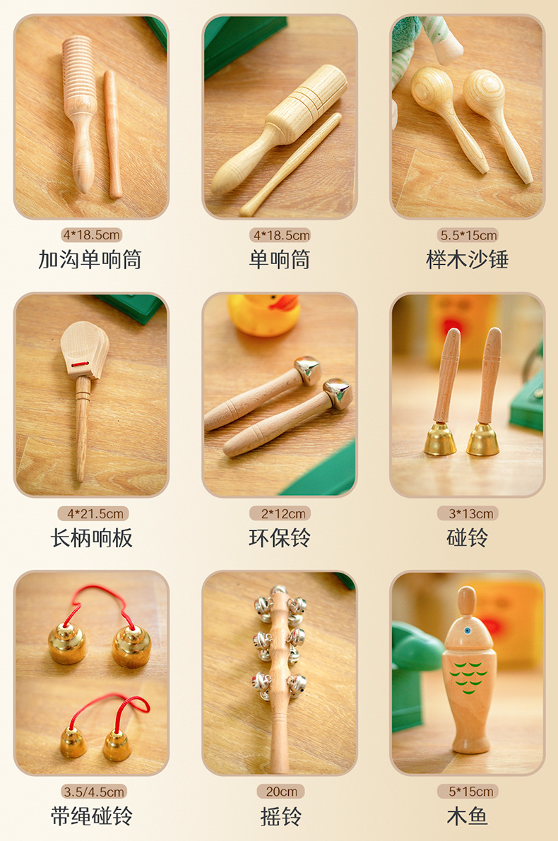 Orff 타악기 로그 세트 교구 보조 터치 나무 물고기 사운드 보드 모래 망치 계란 손목 탬버린 삼각형 더블 링