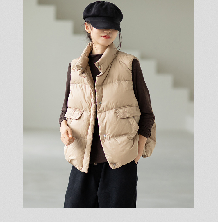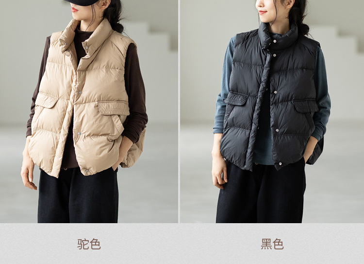 다운 조끼 여성 하이 엔드 겨울 여성 짧은 오리 다운 새로운 다운 조끼 여성 양복 조끼 다운 재킷 Pinghu