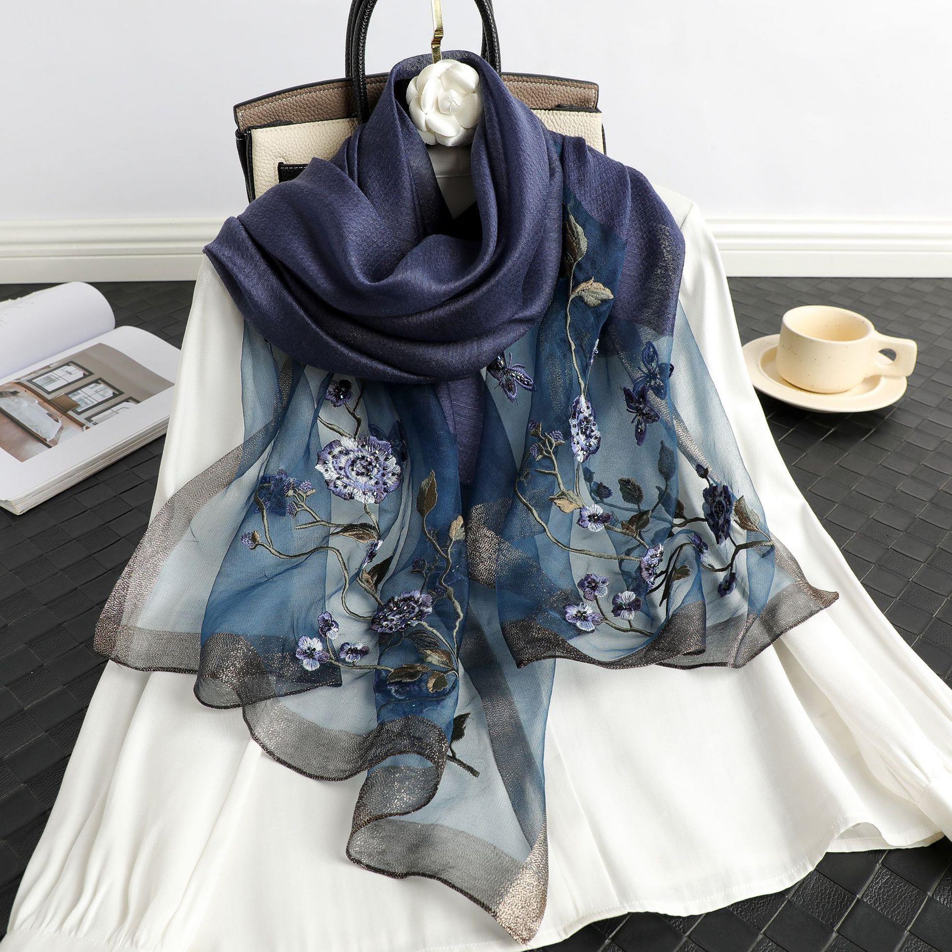 새로운 수제 페르시 자수 실크 스카프 뽕나무 실크 울 스카프 장미 자수 목도리 도매스토어 가기