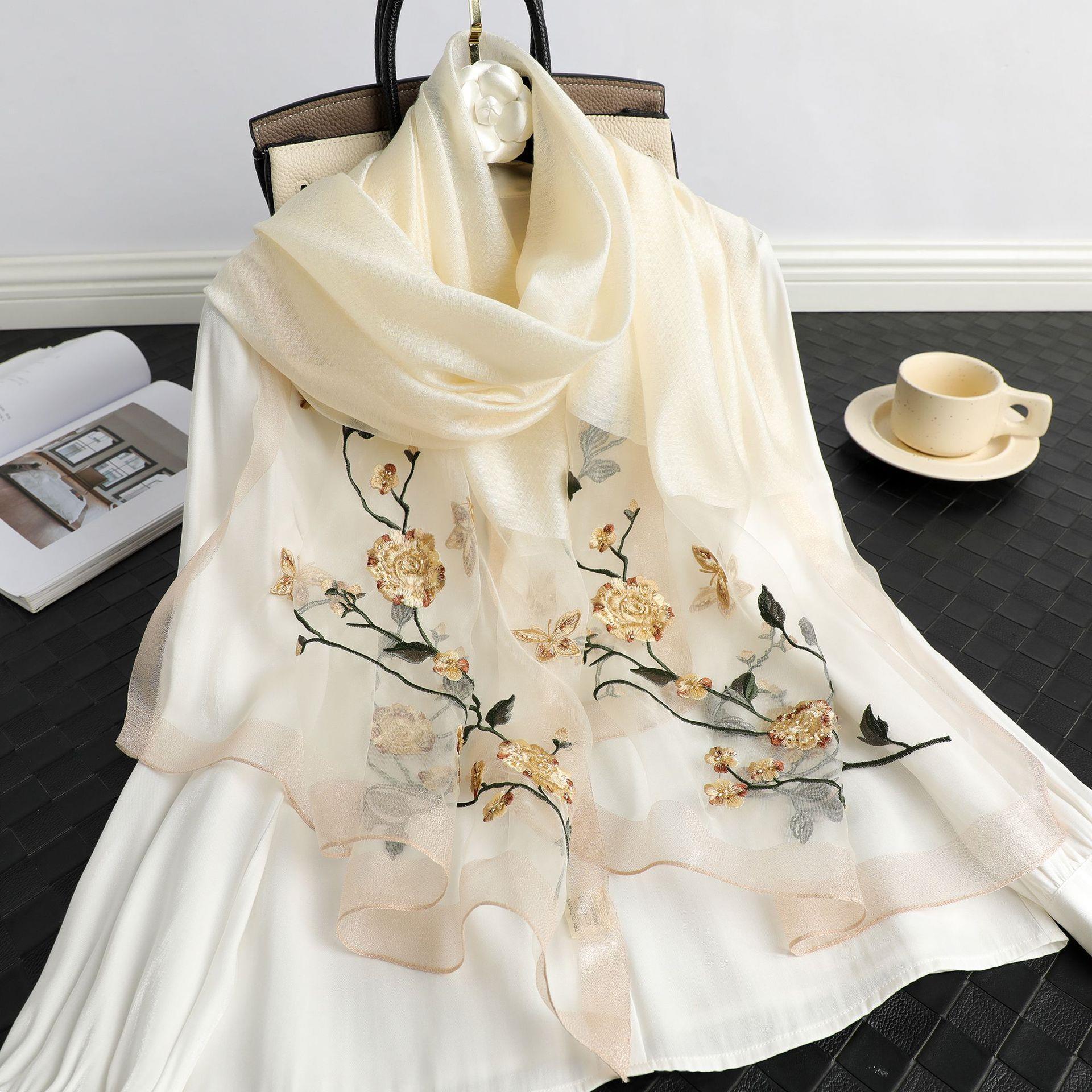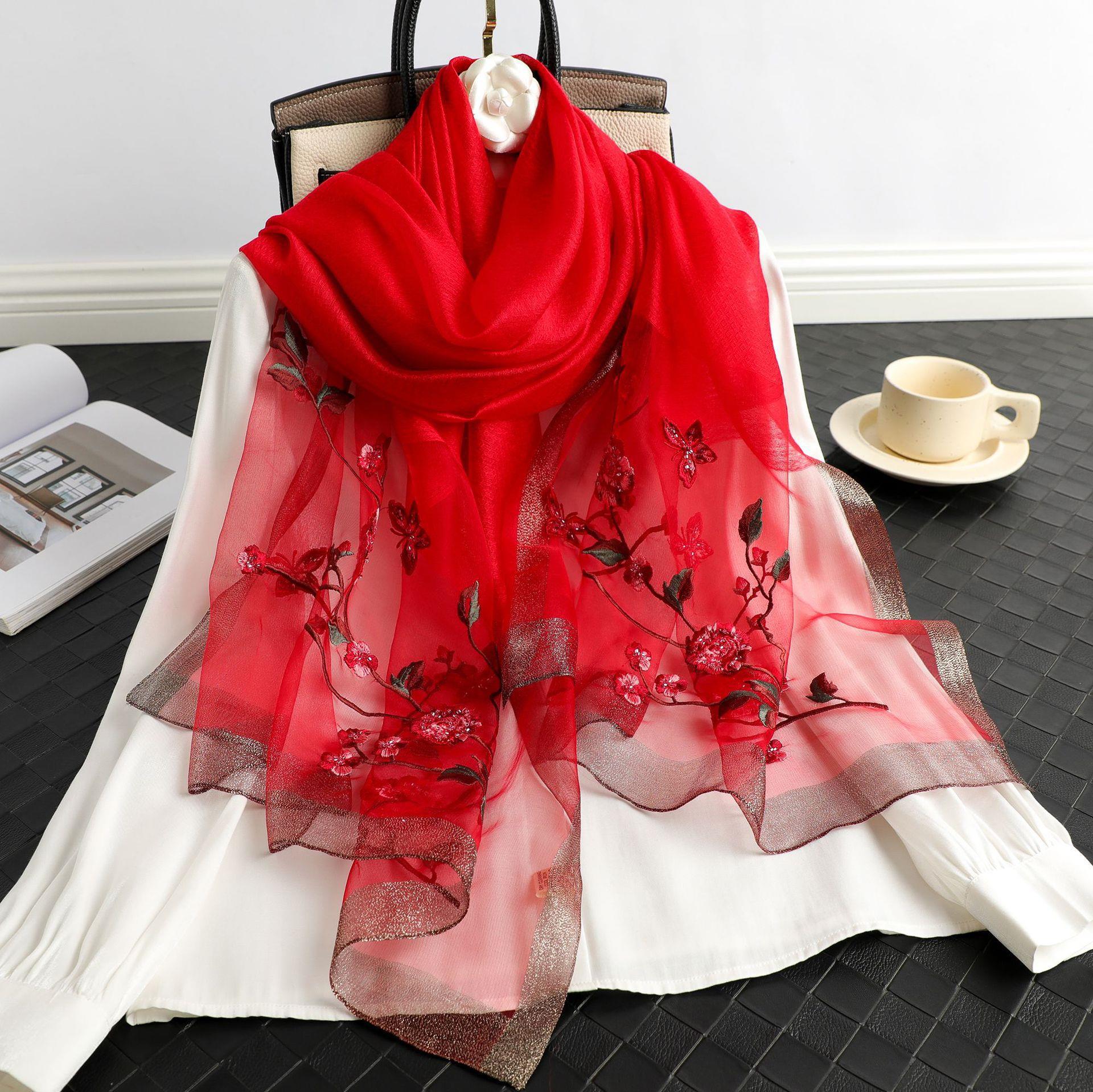 새로운 수제 페르시 자수 실크 스카프 뽕나무 실크 울 스카프 장미 자수 목도리 도매