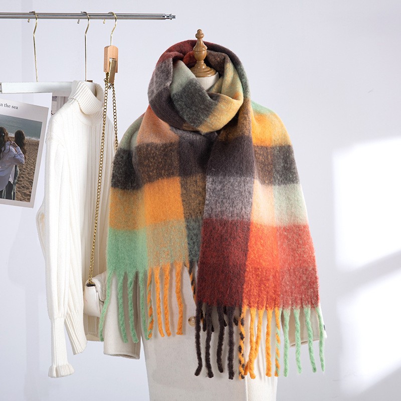 여성용 겨울 고급스러운 클래식 레인보우 패션 다용도 모조 캐시미어 숄 두꺼운 보온 스카프스토어 가기