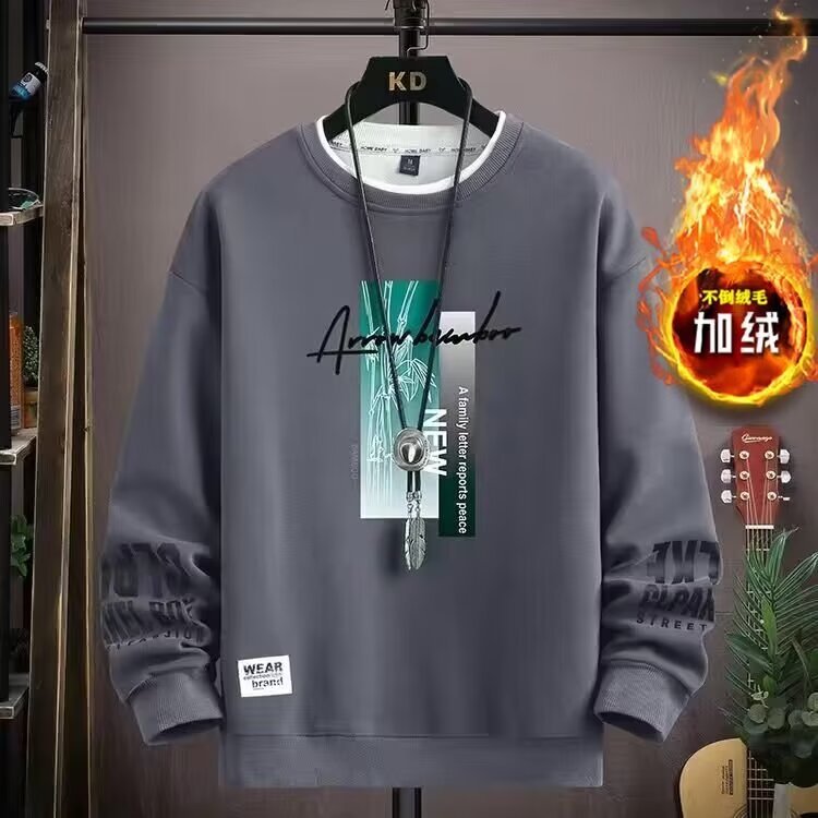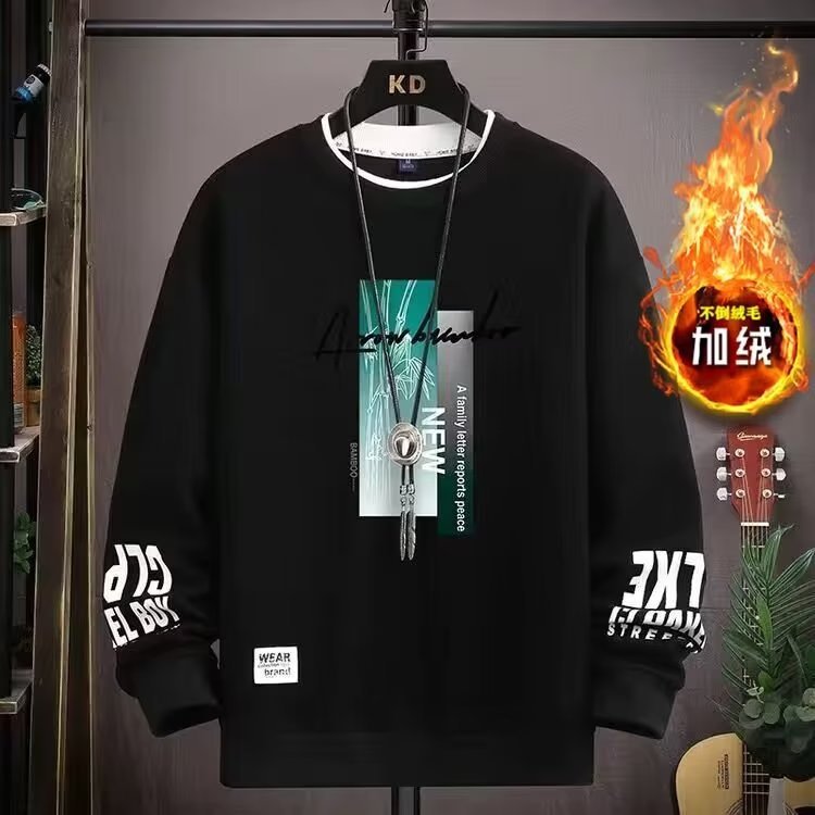 기모 두꺼운 둥근 목 땀 남자 봄과 가을 2024 새로운 도착 중학교 학생 젊은 잘 생긴 큰 소년 남자 스타일스토어 가기