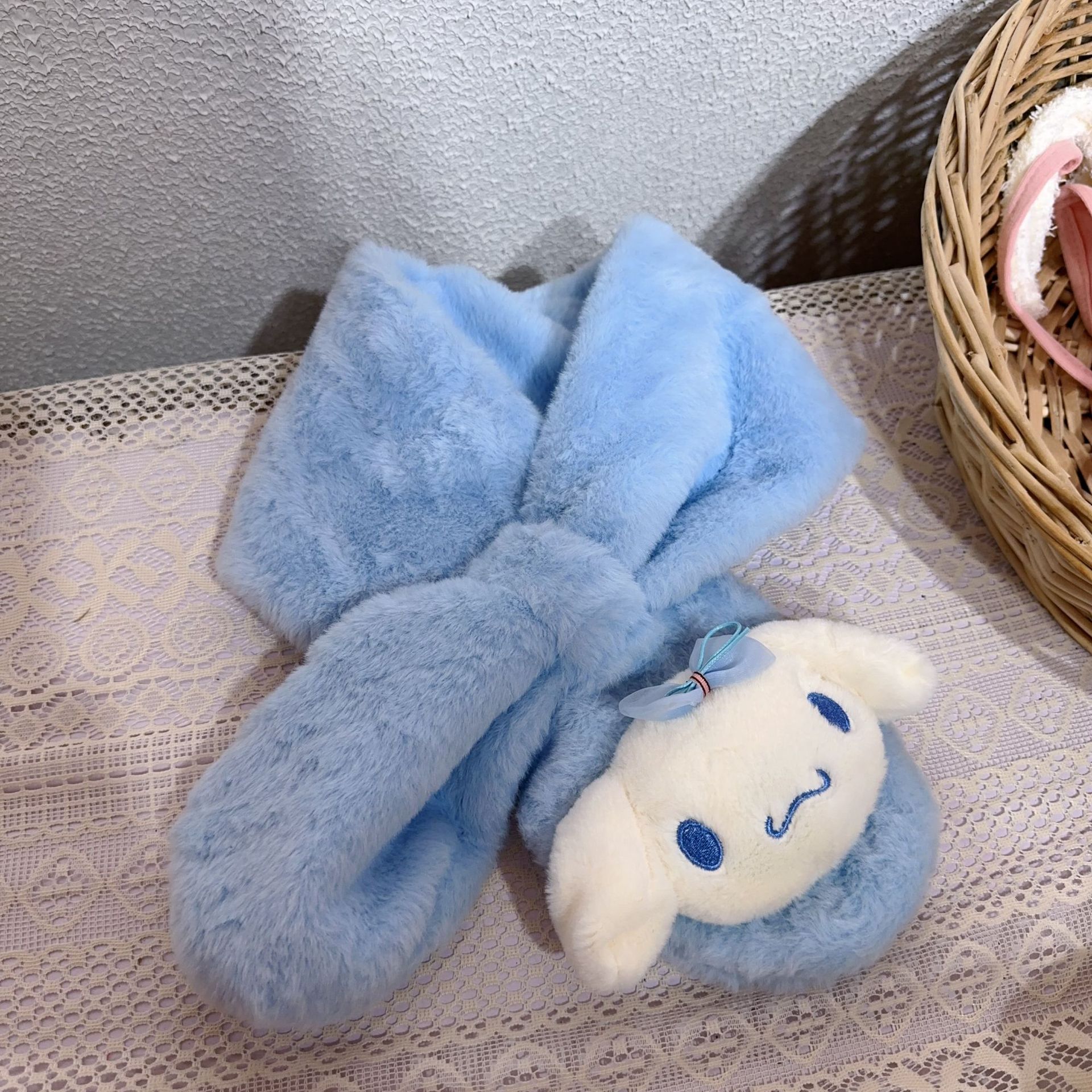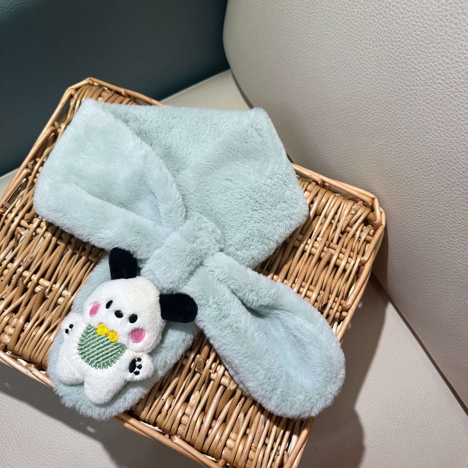 2025 새로운 어린이 스카프 가을, 겨울 플러시 부모-자식 따뜻한 귀여운 두꺼운 만화 모조 토끼 모피 아기 스카프