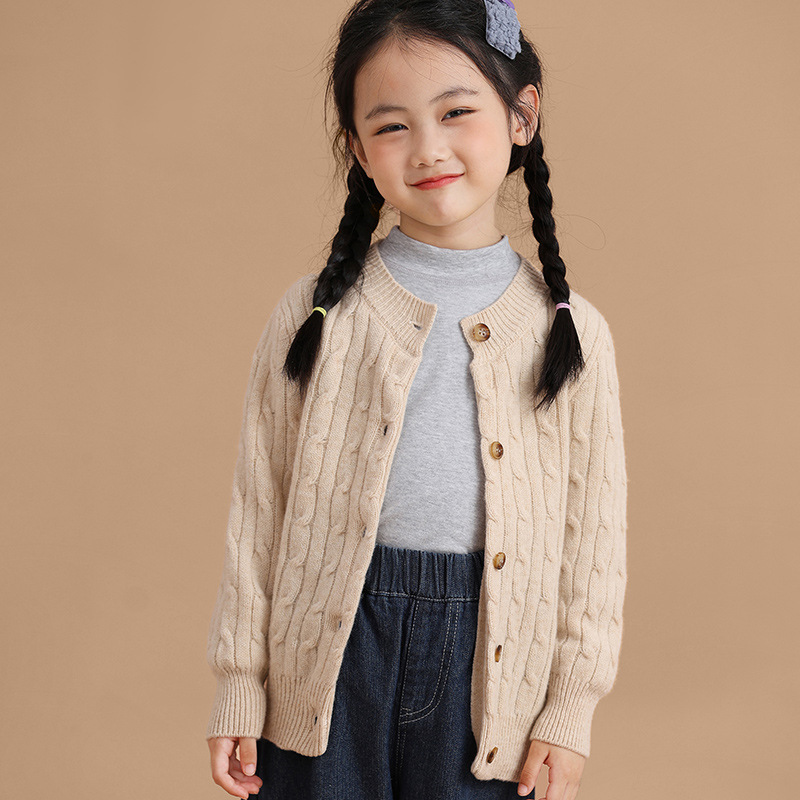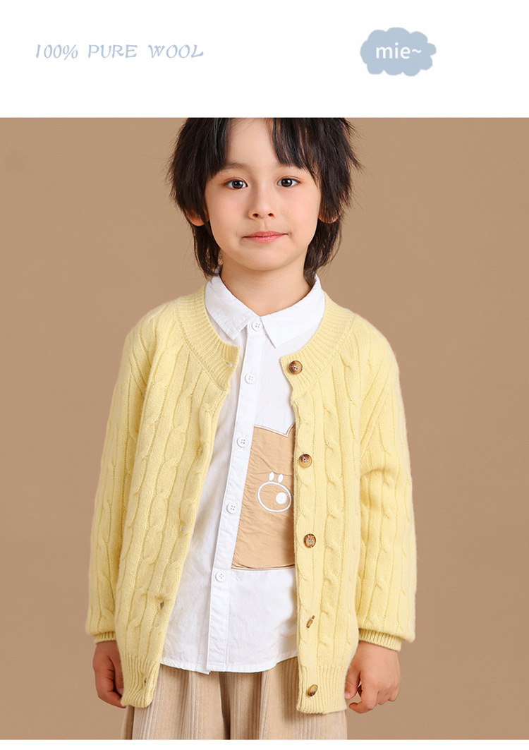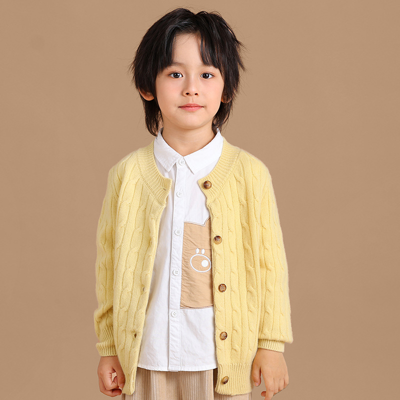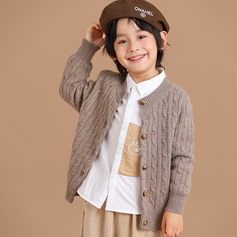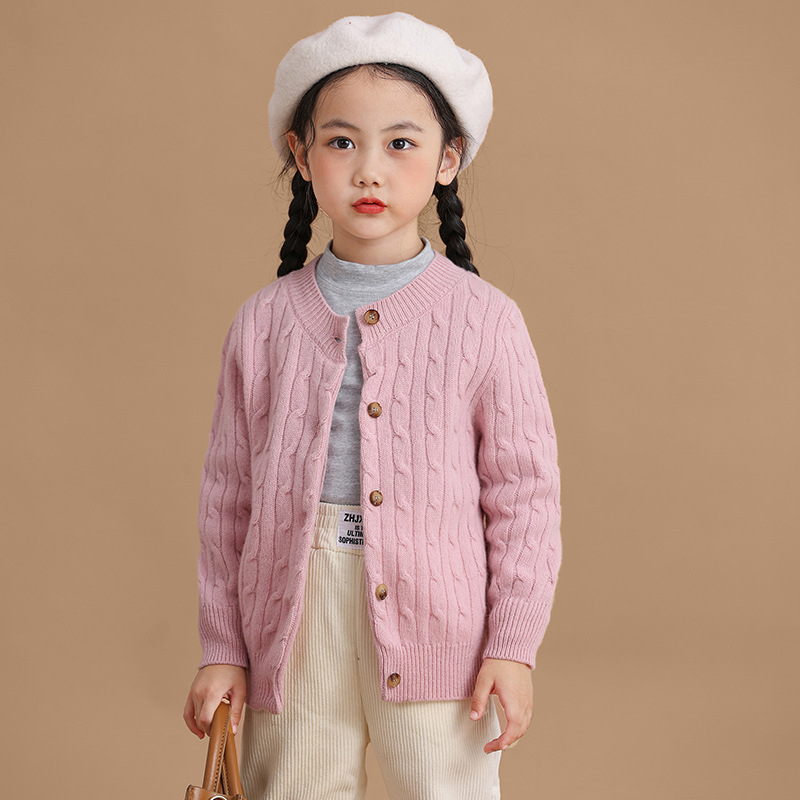 소년과 소녀 100 순수 울 클래식 빈티지 트위스트 니트 가디건 두꺼운 라운드 넥 단색 유행 스웨터스토어 가기