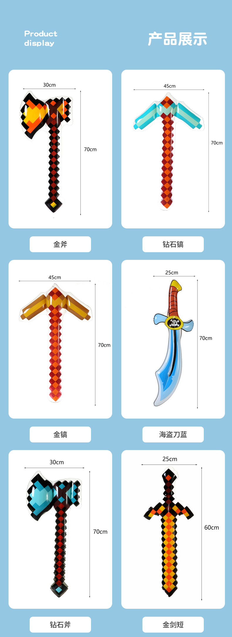 2023 새로운 PVC 어린이 만화 풍선 장난감 검 도끼 곡괭이 장난감 제조 업체 도매스토어 가기