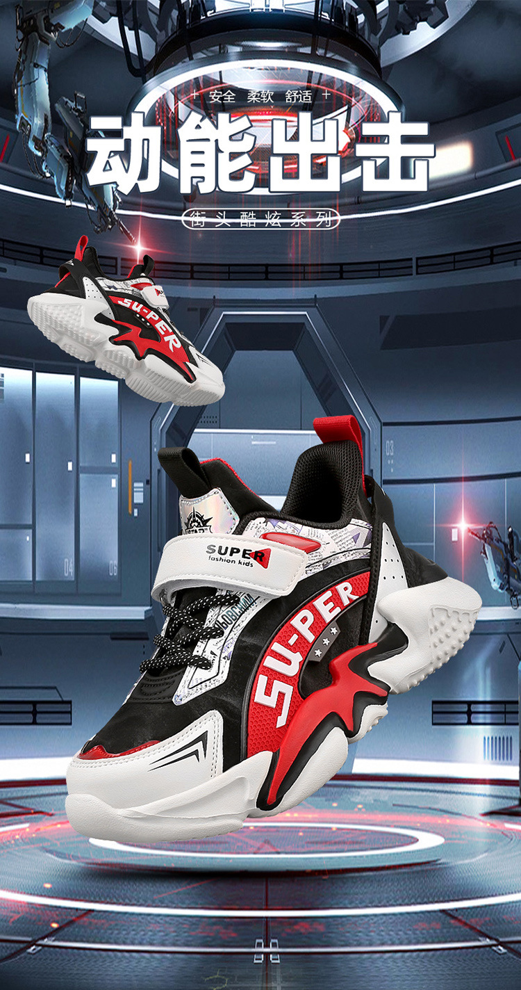소년 신발 2024 봄과 여름 새로운 미드 체이스 메쉬 통기성 학생 비 슬립 소프트 바닥 소년 어린이 운동화스토어 가기