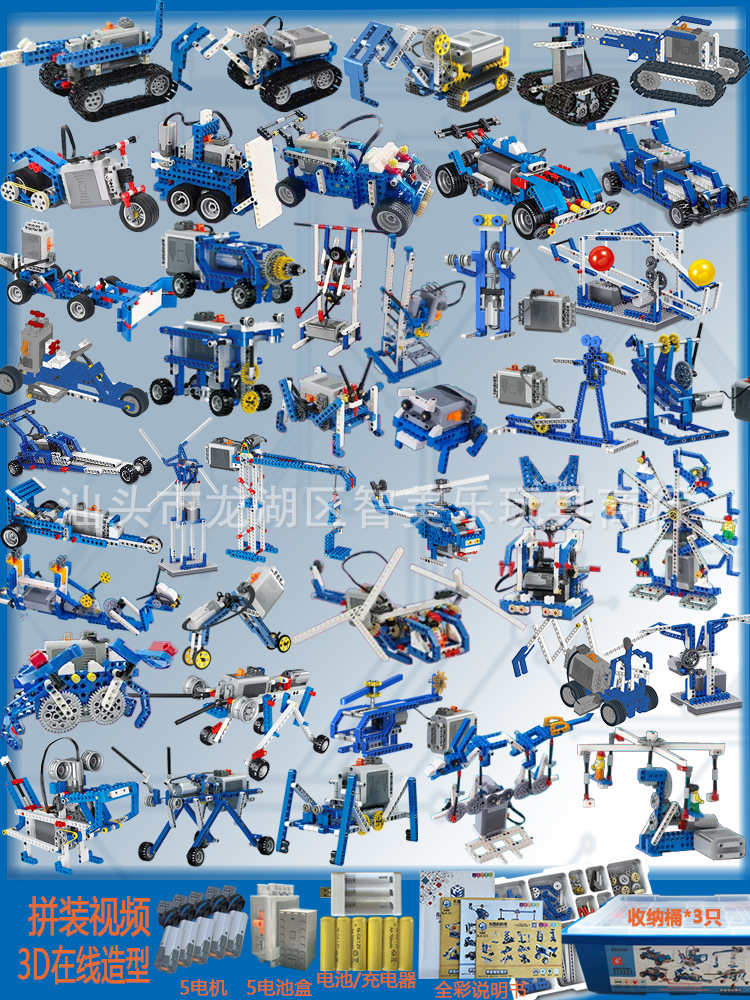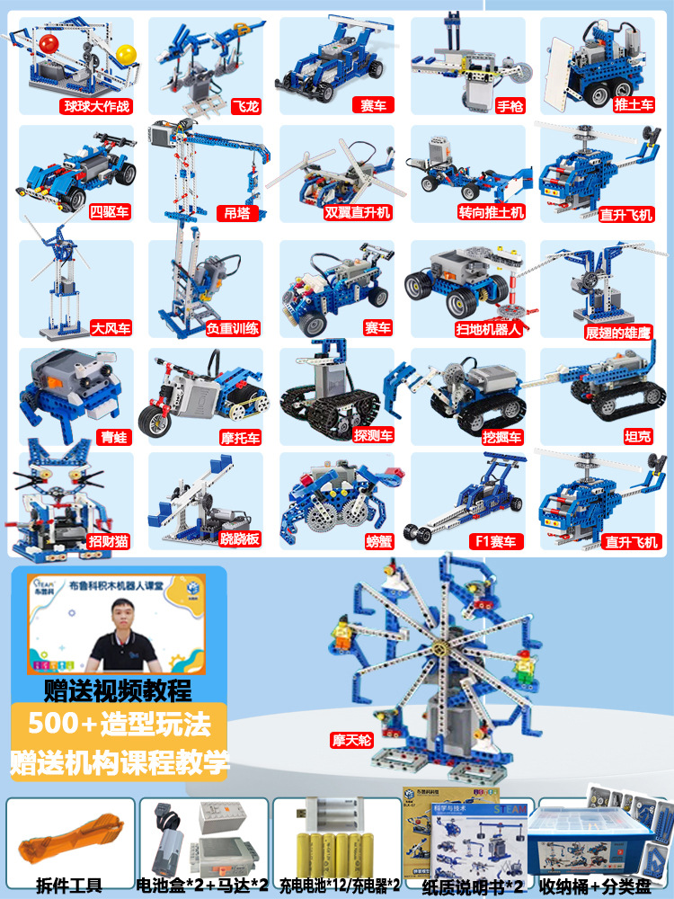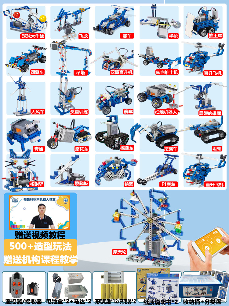 • 【중급 전동 모델】 파워 세트 3개, 1333개 블록, 500가지 모델링 튜토리얼, 수납 상자 1개 + 분류 트레이 + 충전 배터리