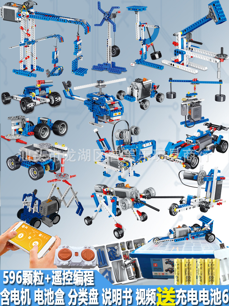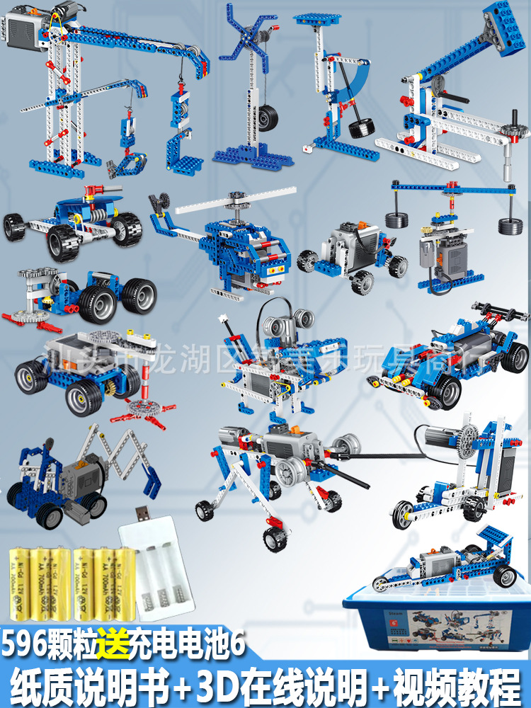 • 모터 1개 9686 과학 및 교육 396 입자 + 200 모델링 튜토리얼 소형 저장통 + 무료 충전식 배터리 1개