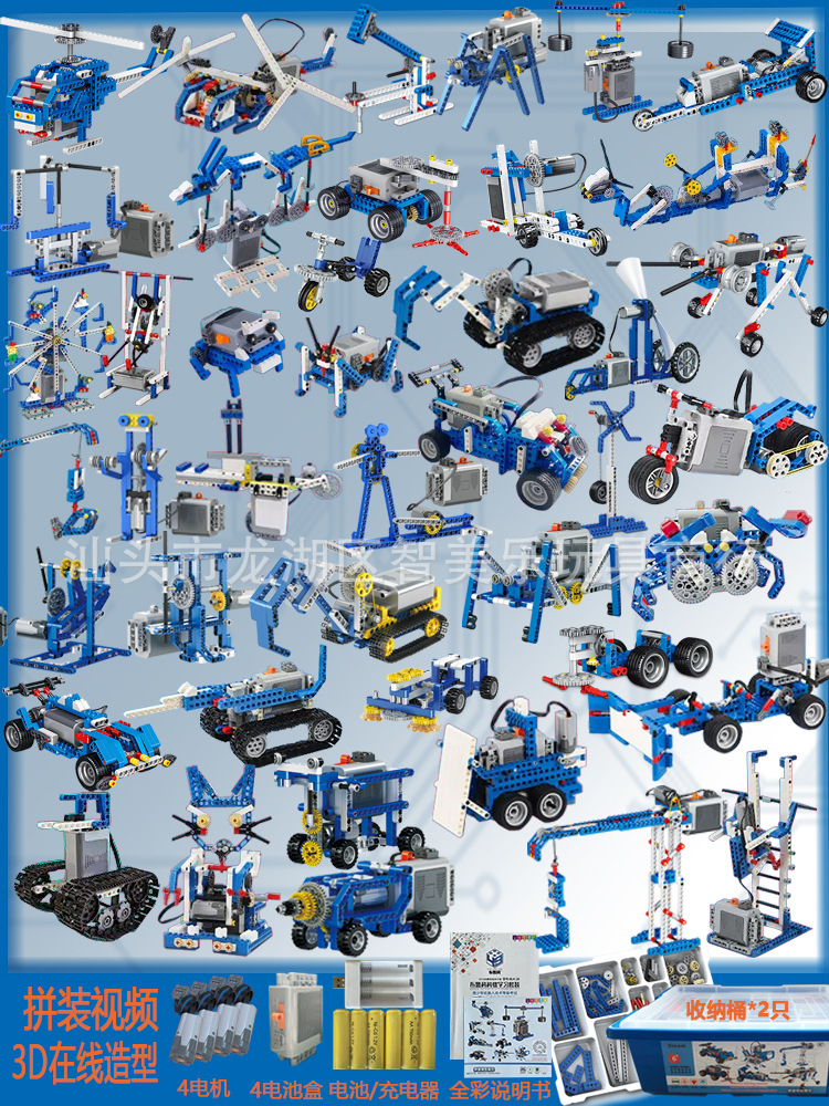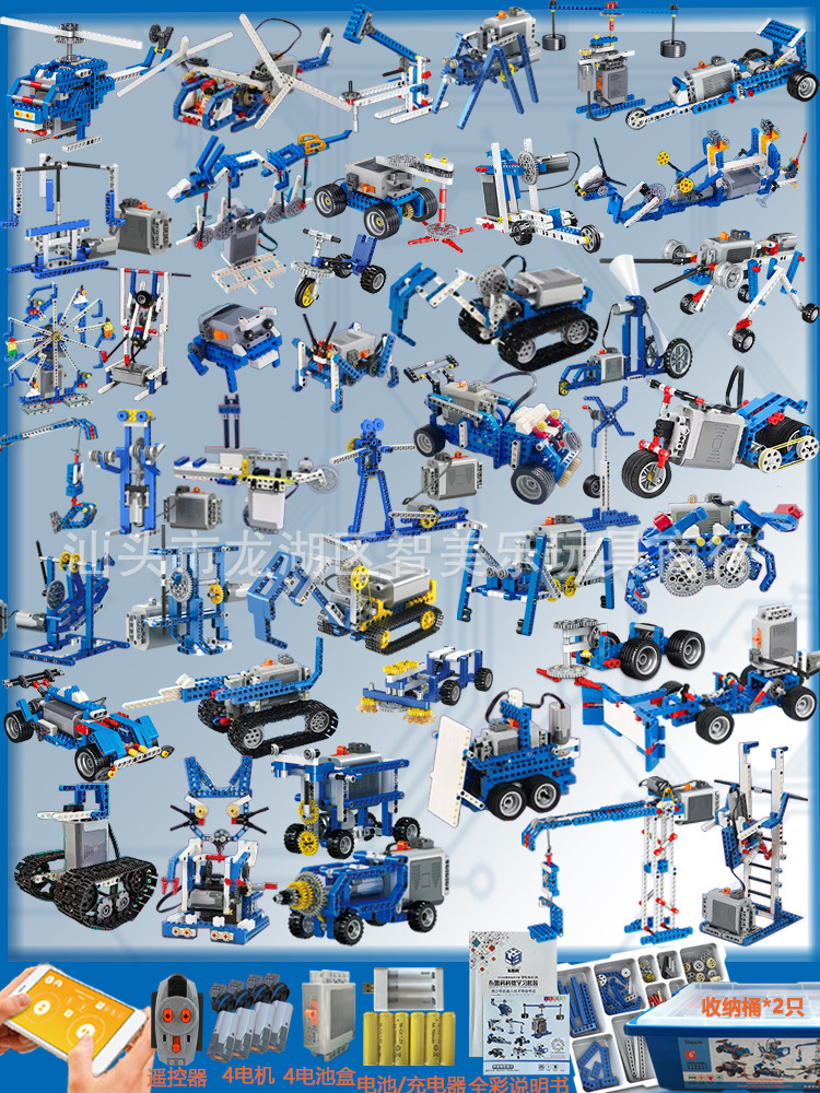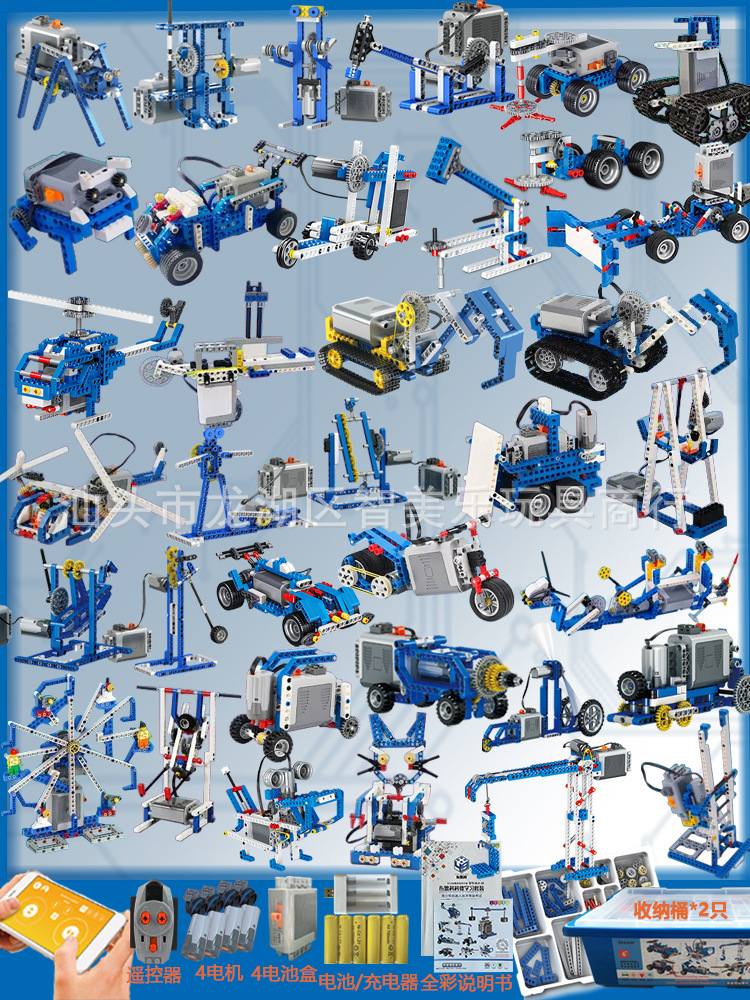 • [고급 프로그래밍 + 원격 제어] 모터 4개, 입자 1684개, 모양 튜토리얼 500개, 보관 상자 2개 + 분류 트레이 + 충전식 배터리