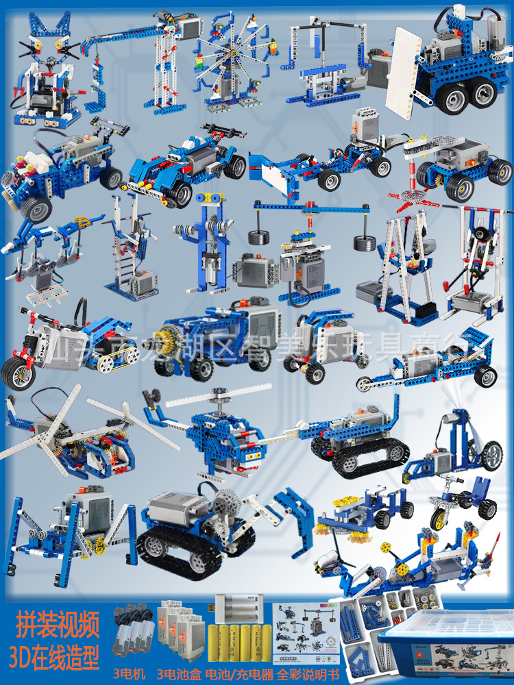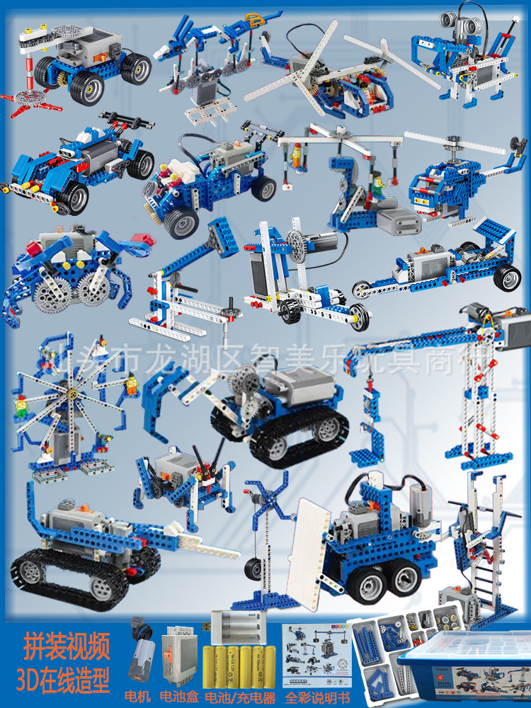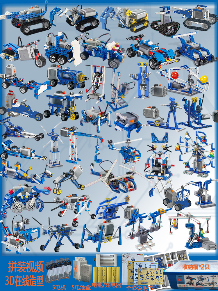 • 【중급 전동 모델】 파워 세트 3개, 1381개 블록, 500가지 모델링 튜토리얼, 수납 상자 1개 + 분류 트레이 + 충전 배터리
