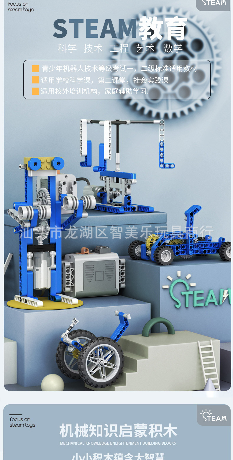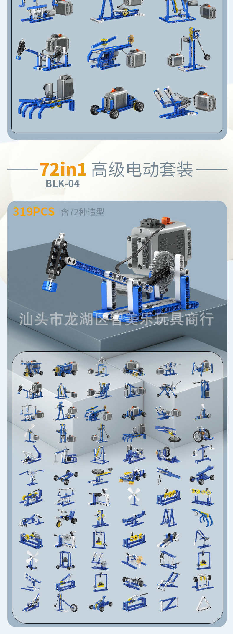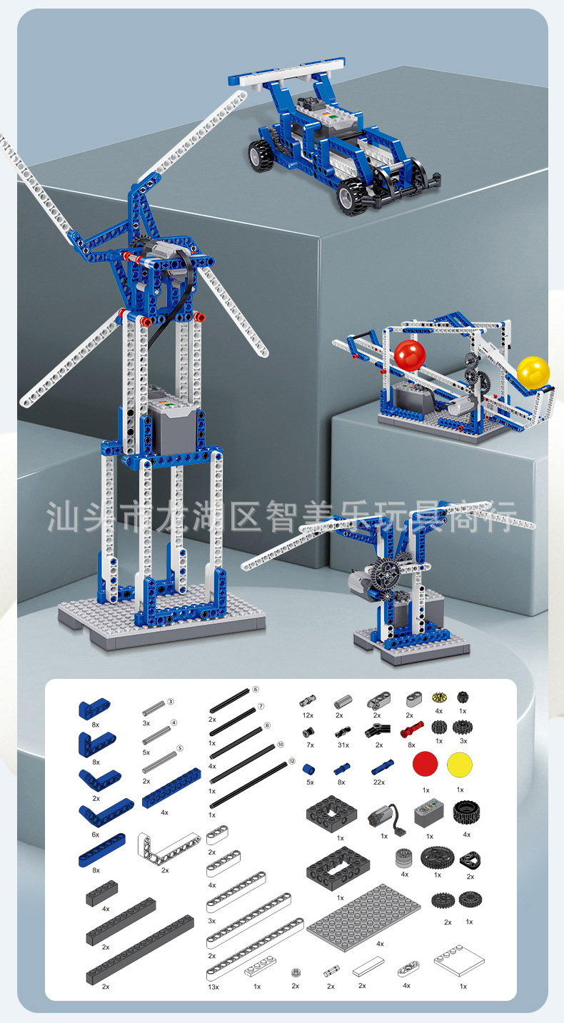• 【중급 전동 모델】 동력 세트 2개, 1213개 블록, 500가지 모델링 튜토리얼, 수납 상자 1개 + 분류 트레이 + 충전 배터리