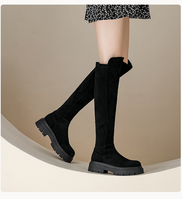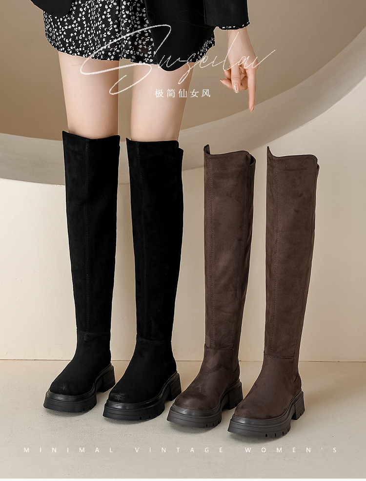 오버 더 니 부츠 스트레치 부츠 얇은 부츠 여자의 2023 새로운 하이힐 두꺼운 바닥 통통녀 부츠 나이트 부츠스토어 가기