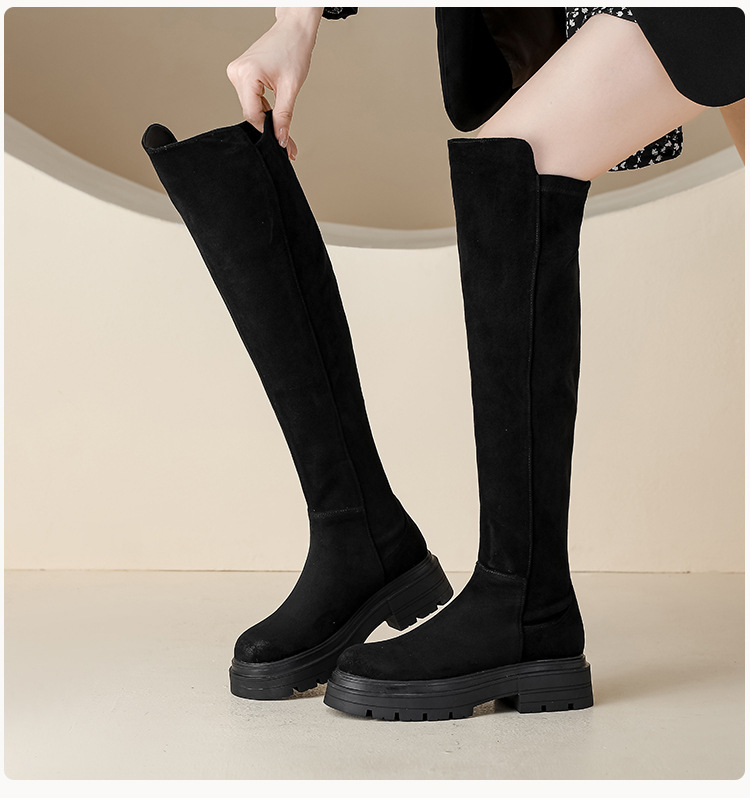오버 더 니 부츠 스트레치 부츠 얇은 부츠 여자의 2023 새로운 하이힐 두꺼운 바닥 통통녀 부츠 나이트 부츠