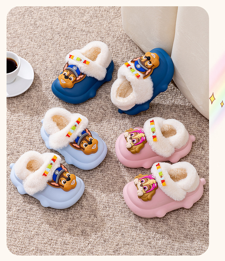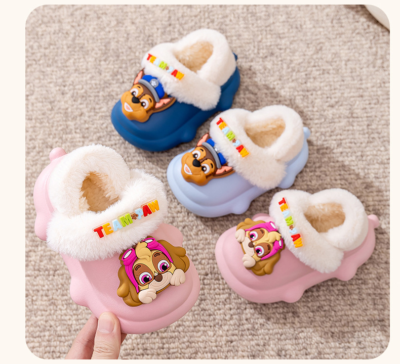 왕 왕 팀 어린이 면화 신발 겨울 탈착 방수 소년 마오 신발 실내 미끄럼 방지 소녀 가방 뒤꿈치 면화 슬리퍼