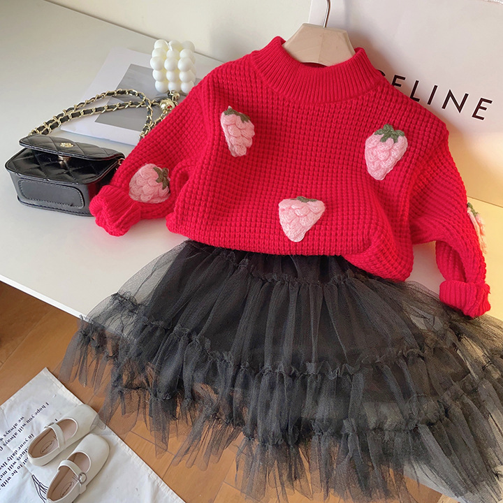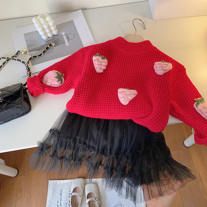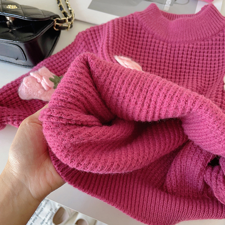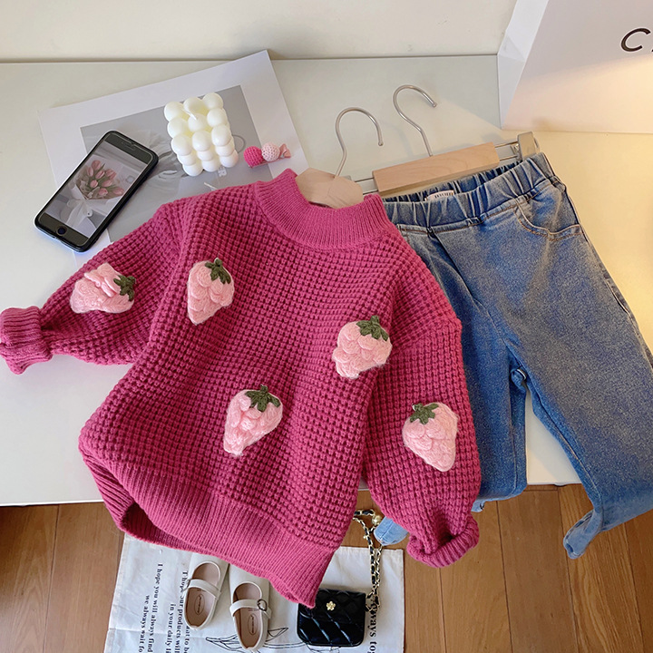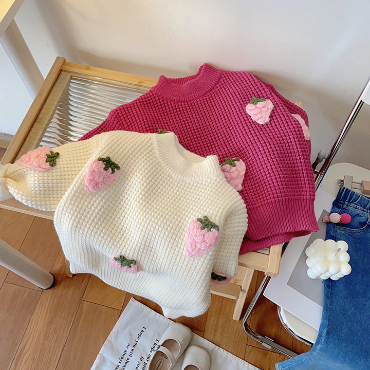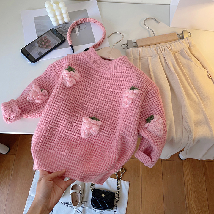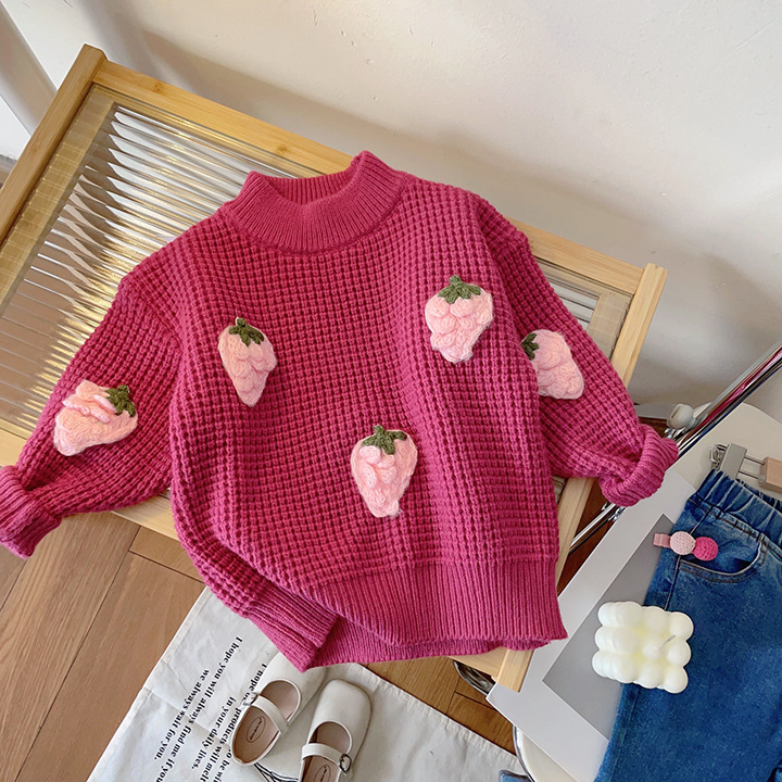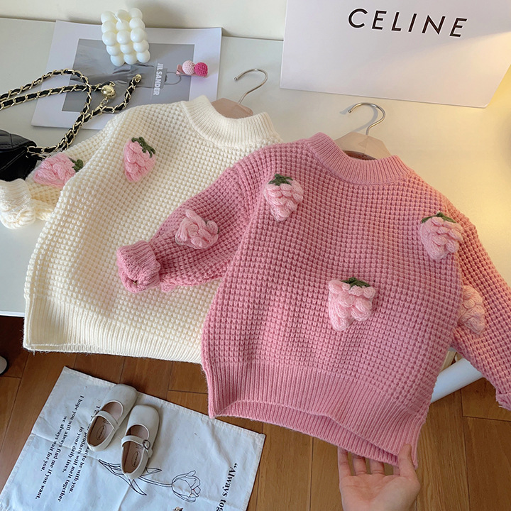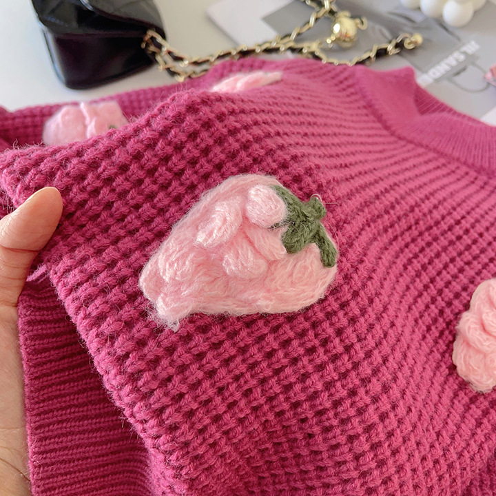 수제 입체 딸기 중공업 게으른 두꺼운 스웨터 가을과 겨울 니트 라운드 넥 세련된 스웨터 베이스 셔츠