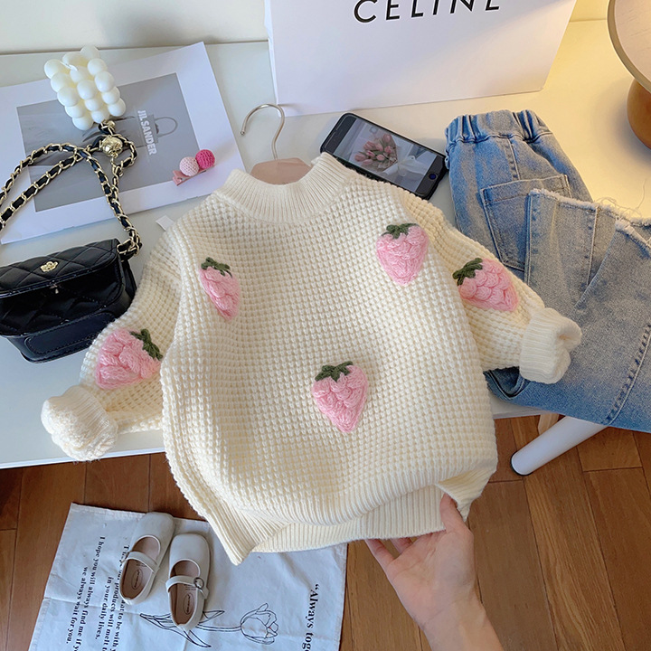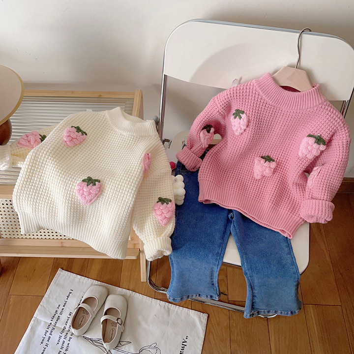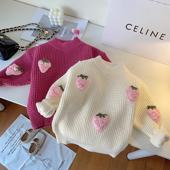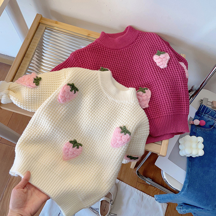 수제 입체 딸기 중공업 게으른 두꺼운 스웨터 가을과 겨울 니트 라운드 넥 세련된 스웨터 베이스 셔츠스토어 가기