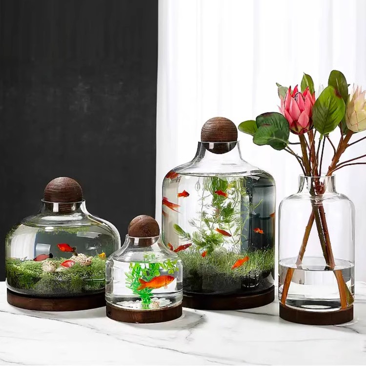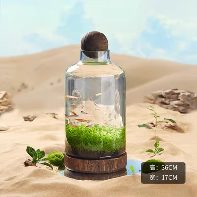크리 에이 티브 라운드 유리 물 잔디 탱크 작은 어항 일본식 작은 입 생태 병 물고기 병 데스크탑 마이크로 풍경 나무 기초
