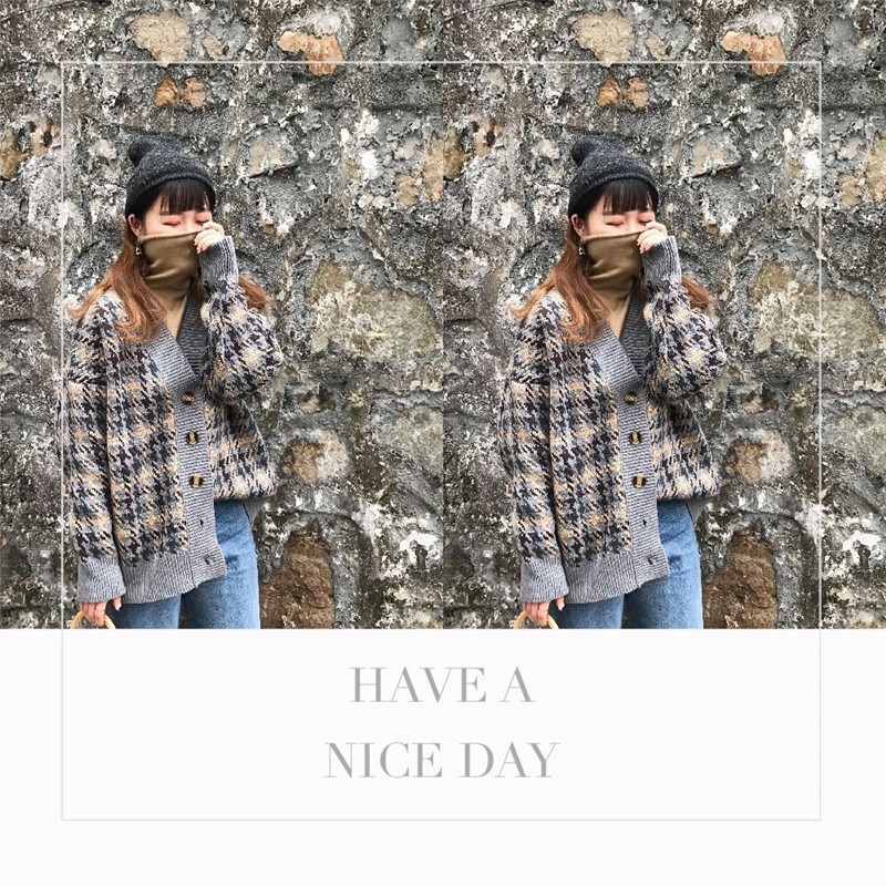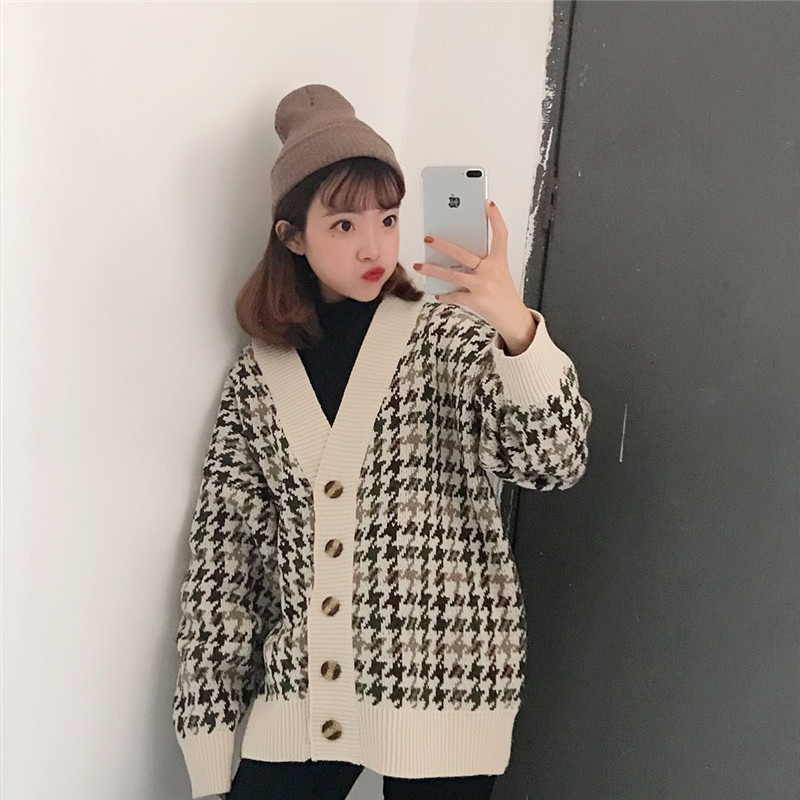 빈티지 chicV 칼라 하운즈투스 패딩 스웨터 코트 긴팔 스웨터 카디건 여성의 가을 한국어 버전스토어 가기
