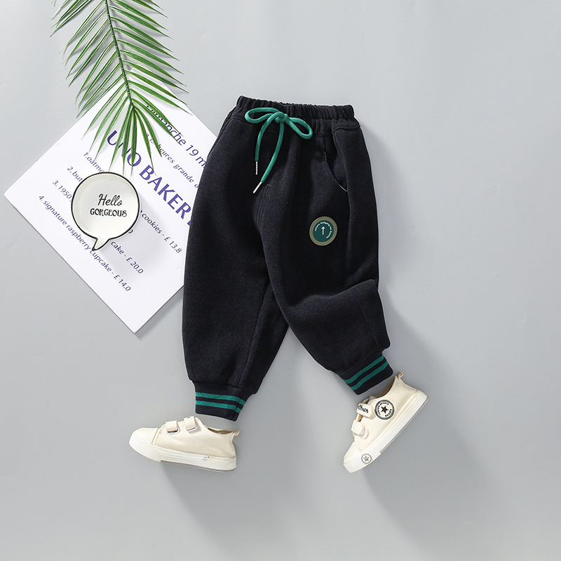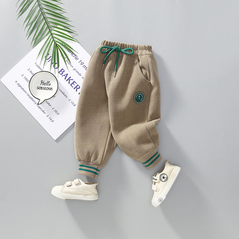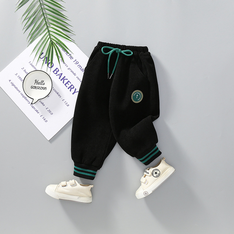 남아 기모 바지 가을과 겨울 새로운 2023 아기 어린이 두꺼운 스웨트 팬츠 남성 및 아기 캐주얼 원피스 양털 트렌디 어린이 바지