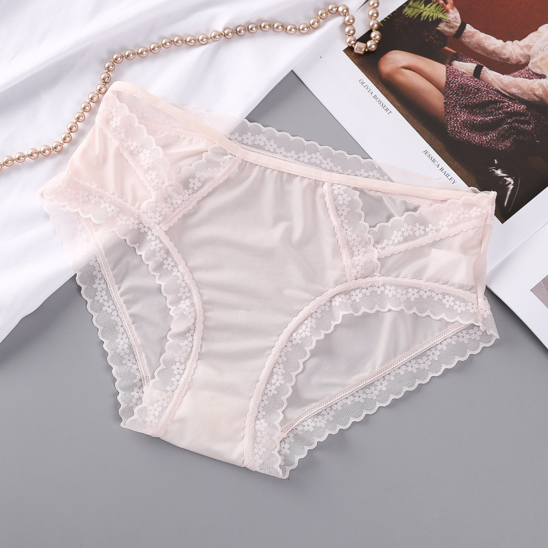 레이스 속옷 소녀의 순수한 욕망 섹시한 여성의 새로운 일본 스타일 달콤한 여름 얇은 소녀의 중간 허리 흰색 반바지스토어 가기