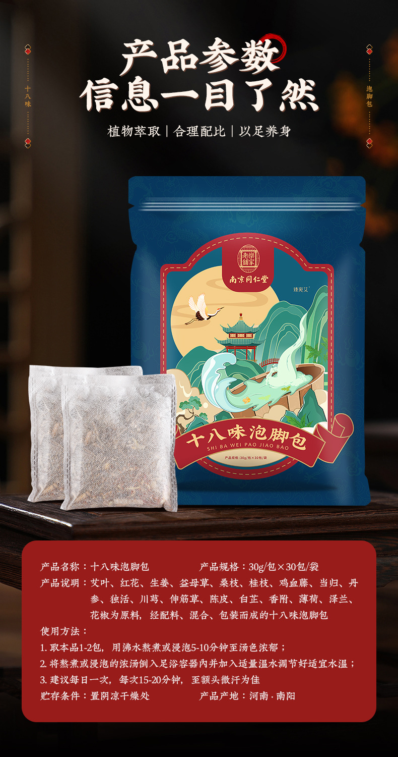 난징 Tongrentang 18 맛 발 흡수 백 아이 카오 발 흡수 백 허브 가정용 발 목욕 가방 발 흡수 백 도매스토어 가기