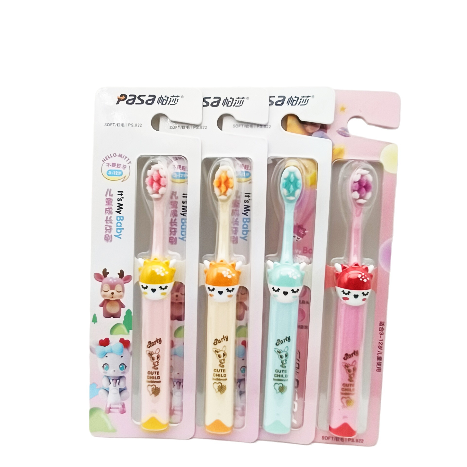파샤 922 어린이 성장 부드러운 부드러운 헤어 브러시 실크 3-12 세 사용 귀여운 아기 칫솔 도매