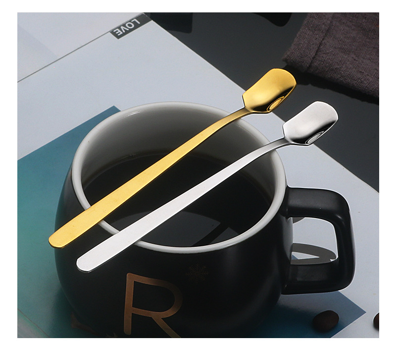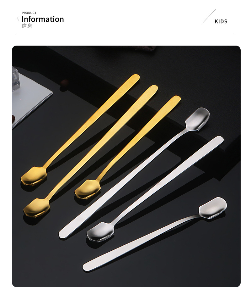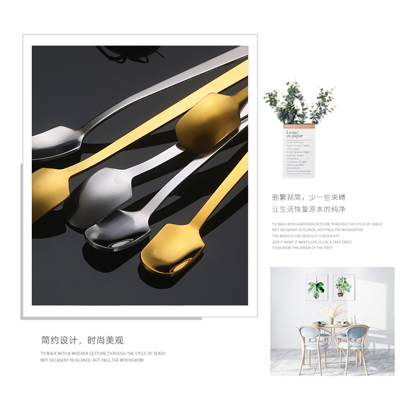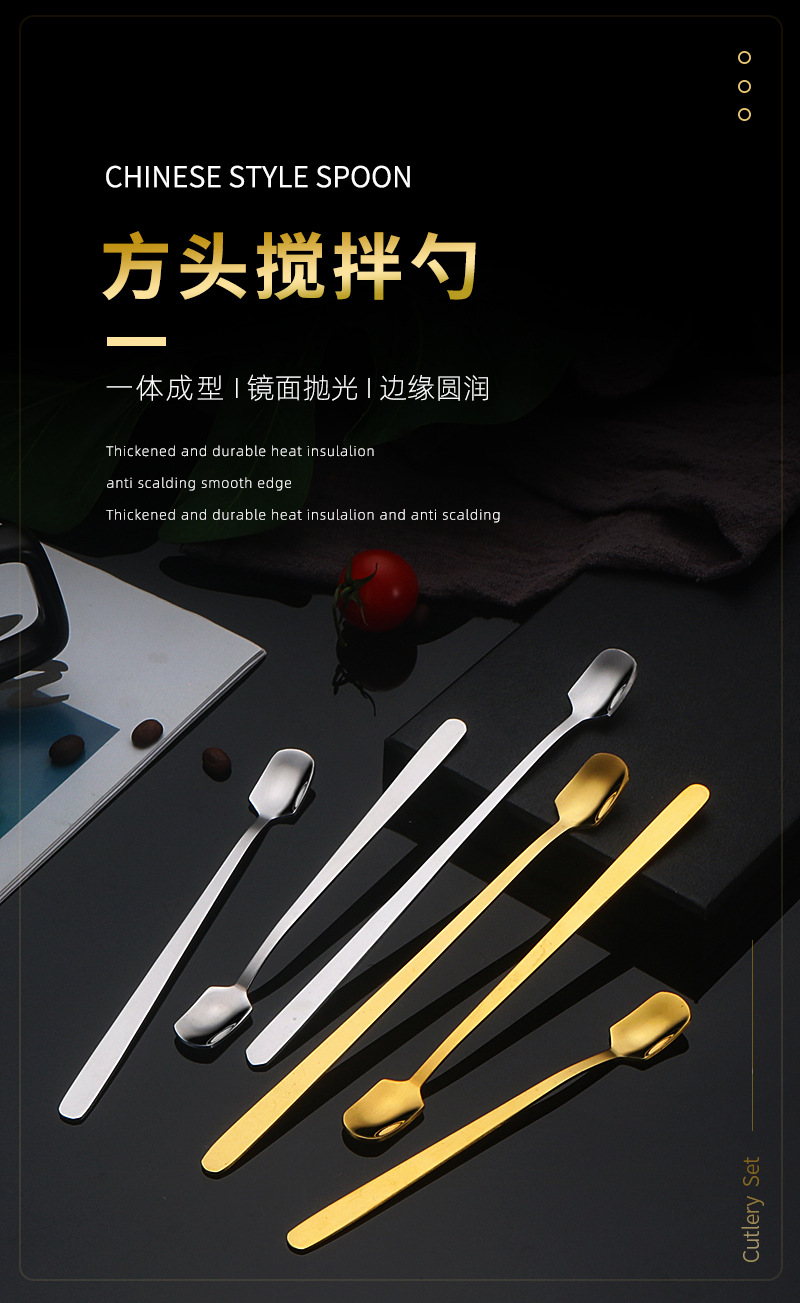 스테인레스 스틸 스퀘어 헤드 스푼 골든 롱 핸들 작은 사각 스푼 커피 스푼 믹싱 스푼 절묘한 디저트 스푼