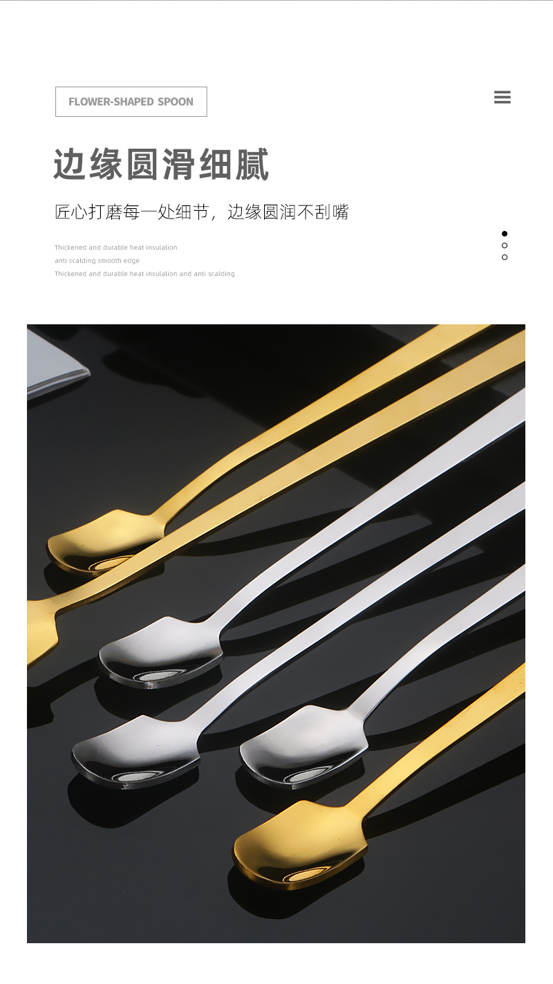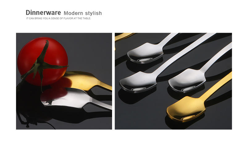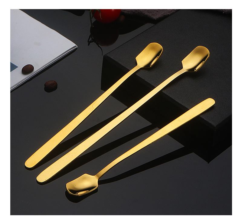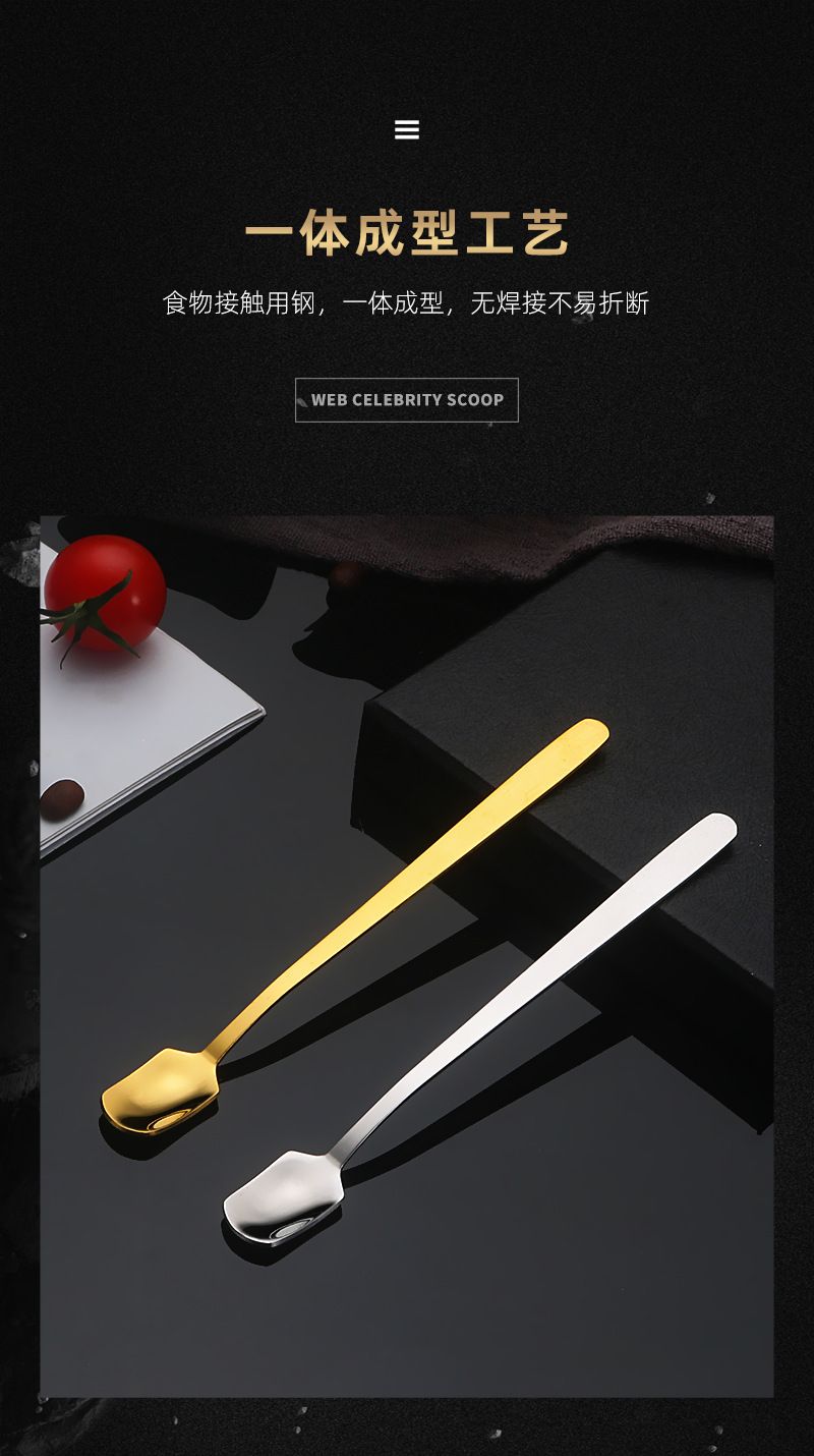 스테인레스 스틸 스퀘어 헤드 스푼 골든 롱 핸들 작은 사각 스푼 커피 스푼 믹싱 스푼 절묘한 디저트 스푼