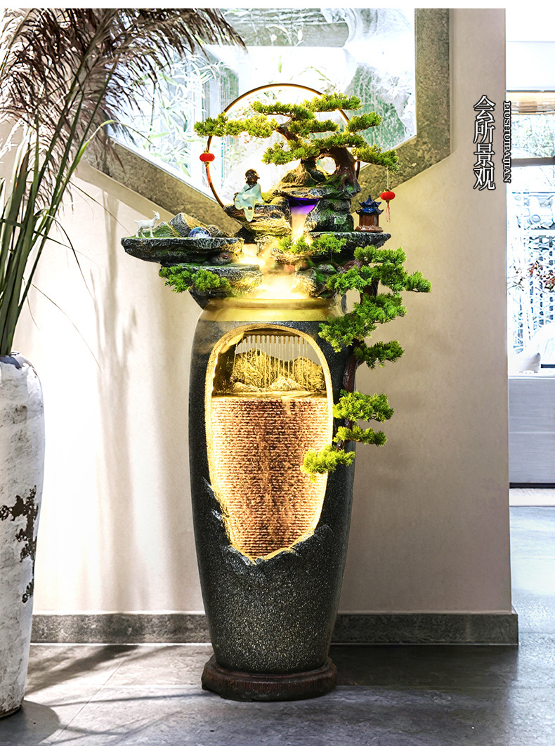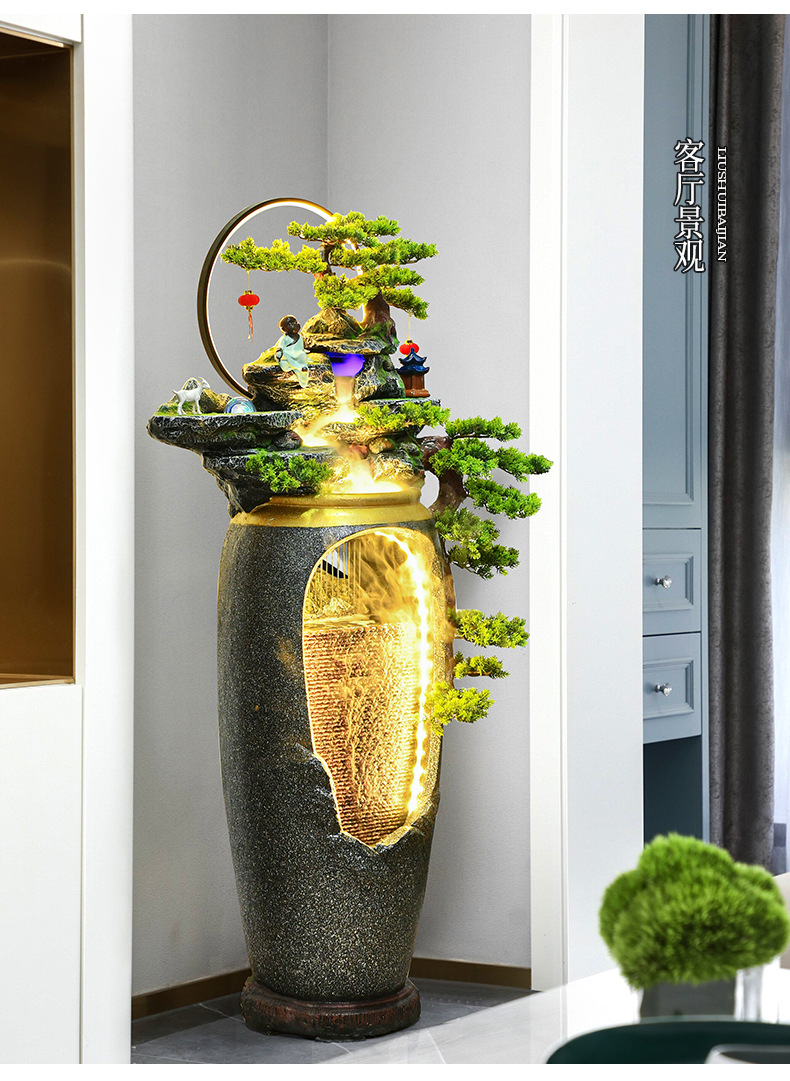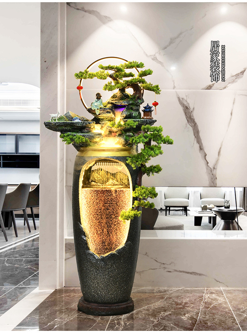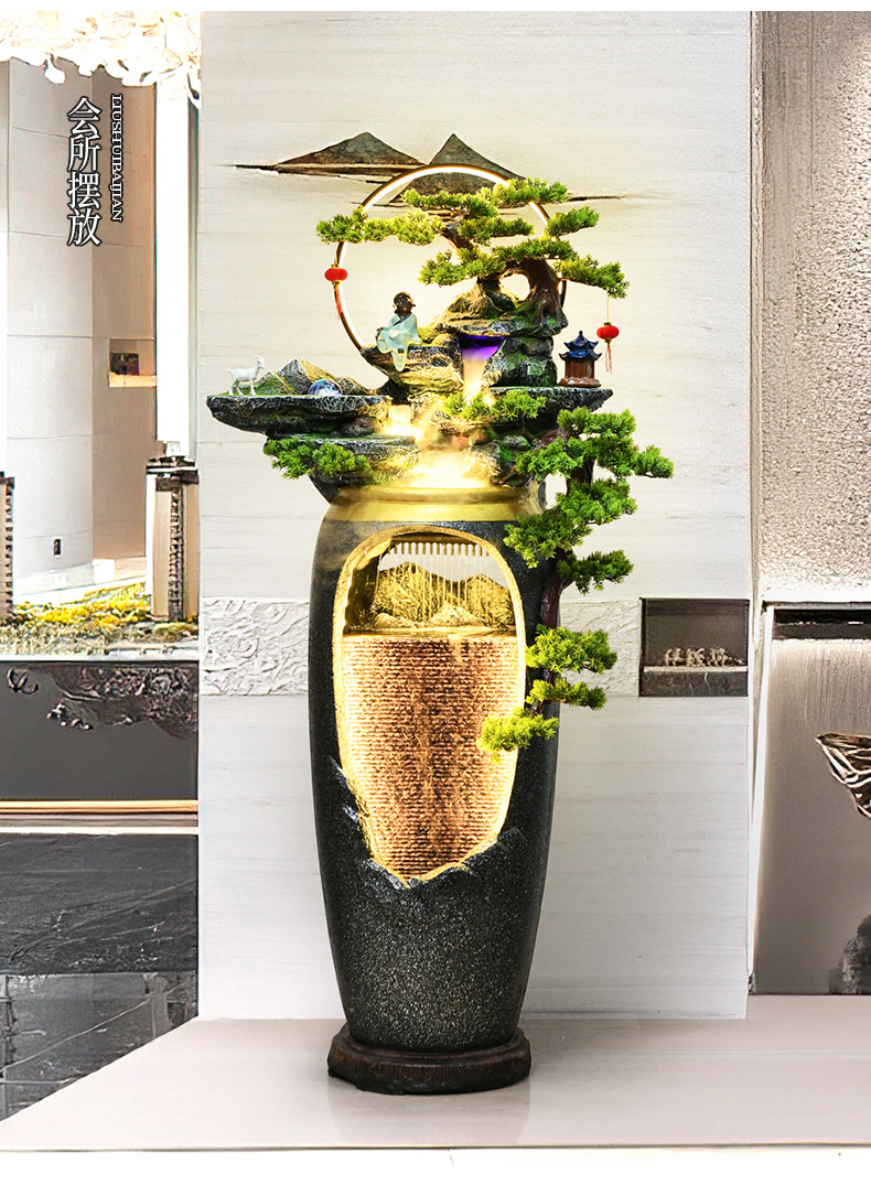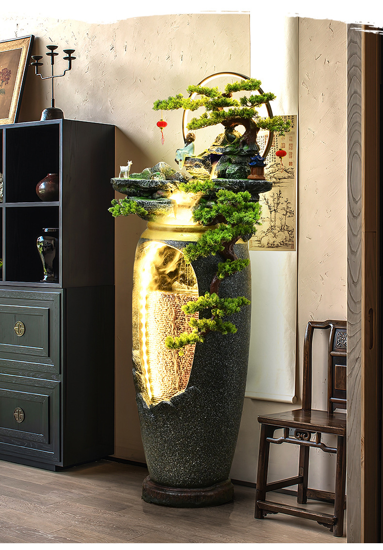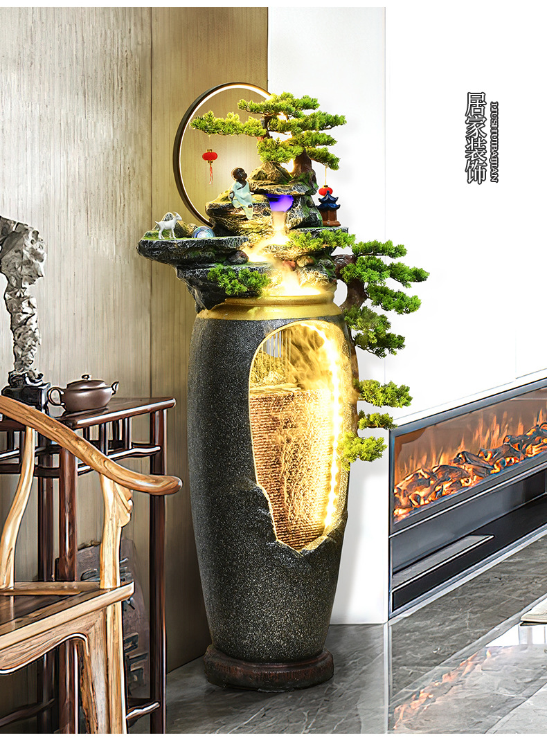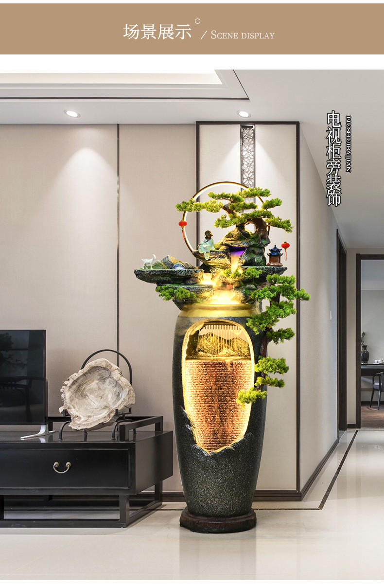 새로운 중국 스타일의 물 분수 TV 캐비닛 옆에 가벼운 고급 바닥 선 홈 풍경 복도 거실 바위 장식스토어 가기