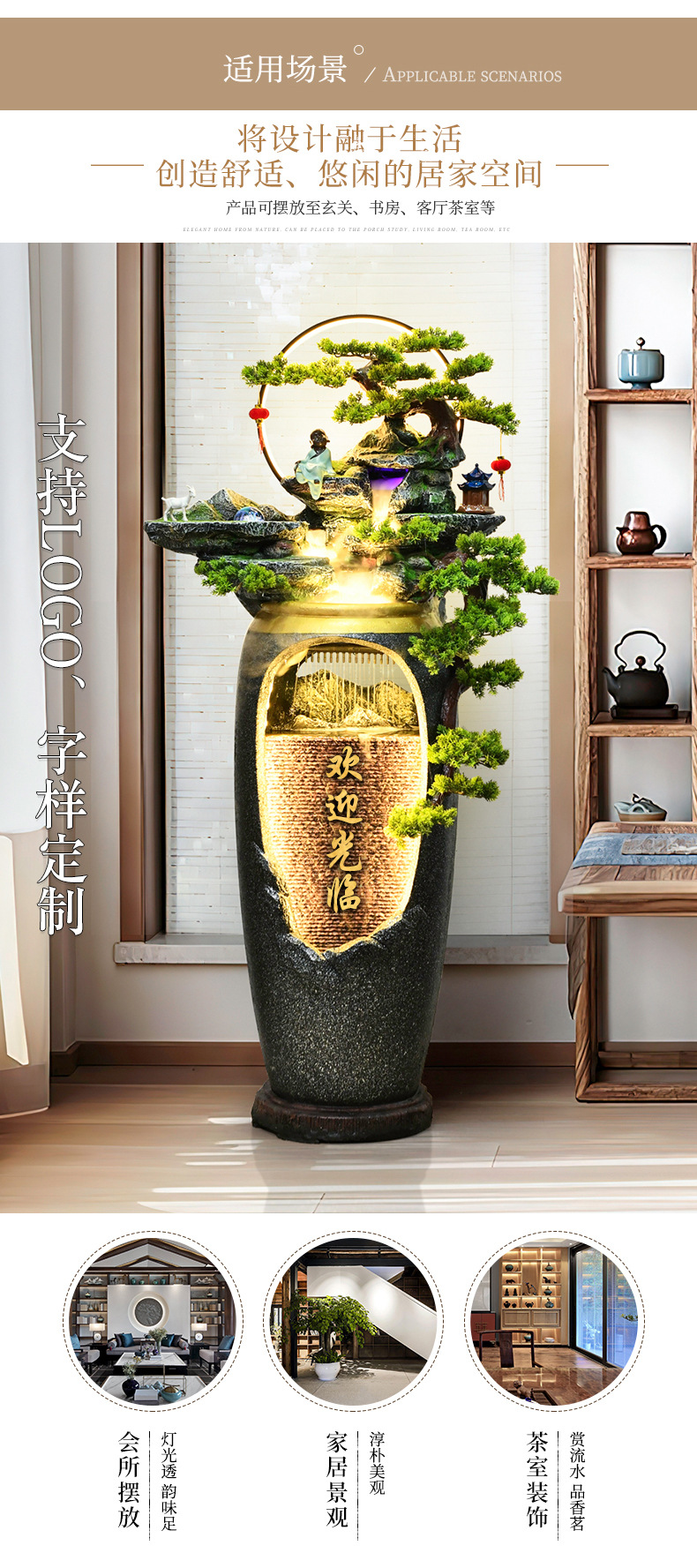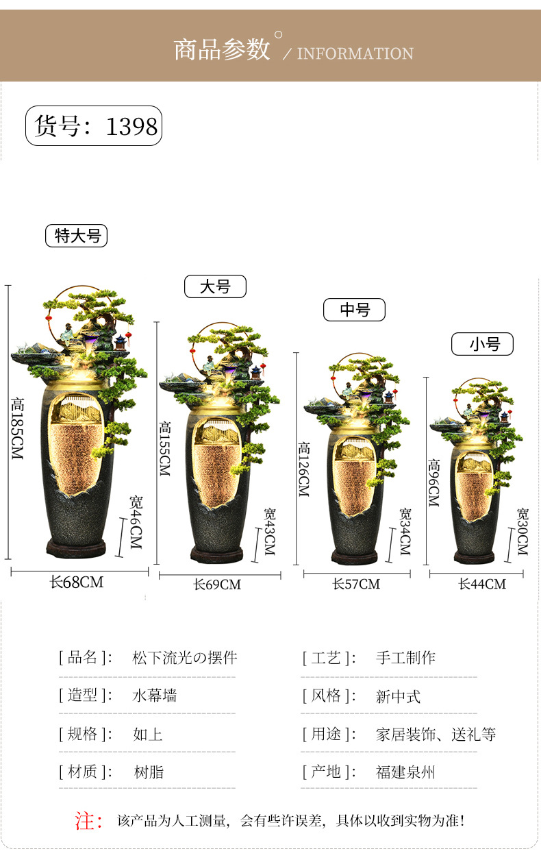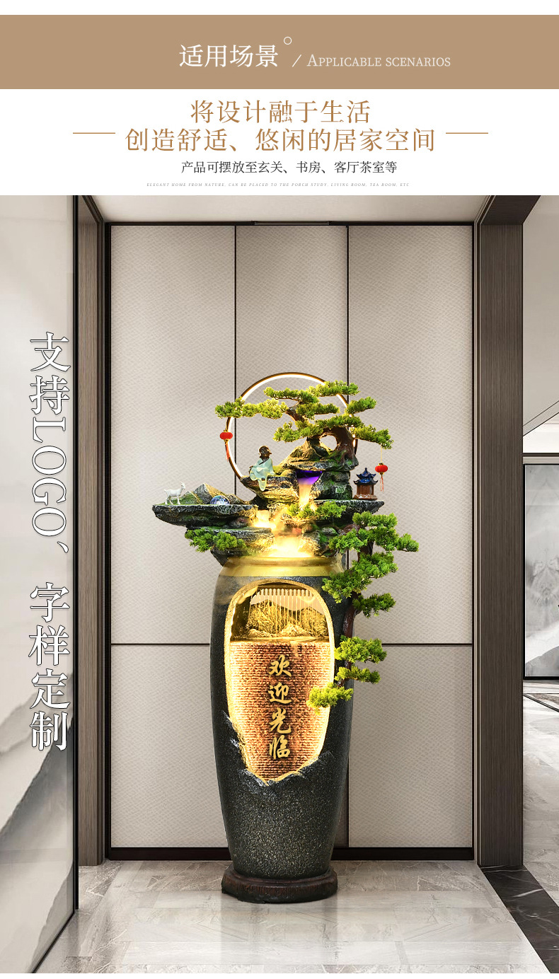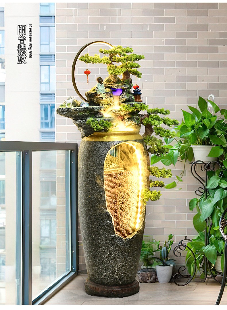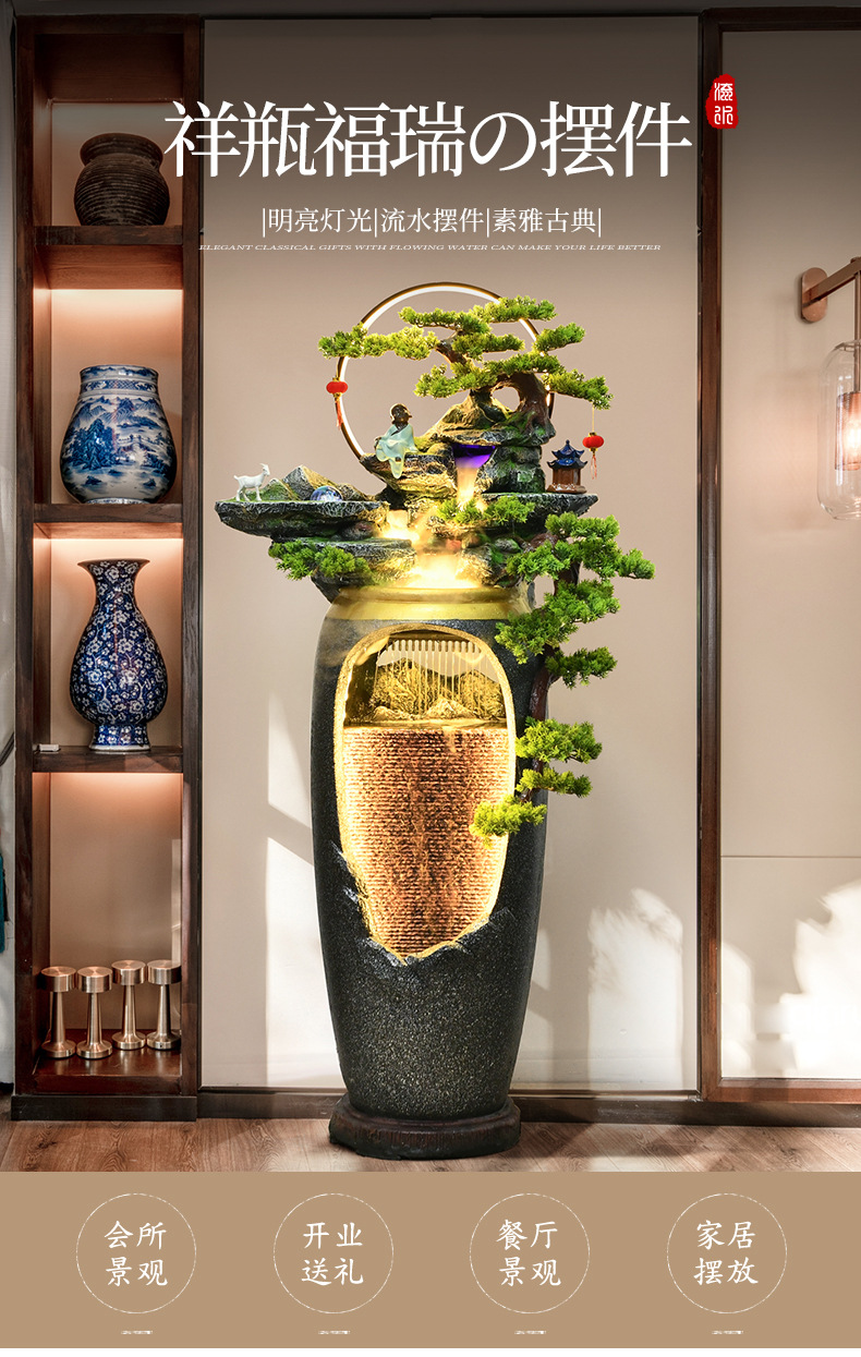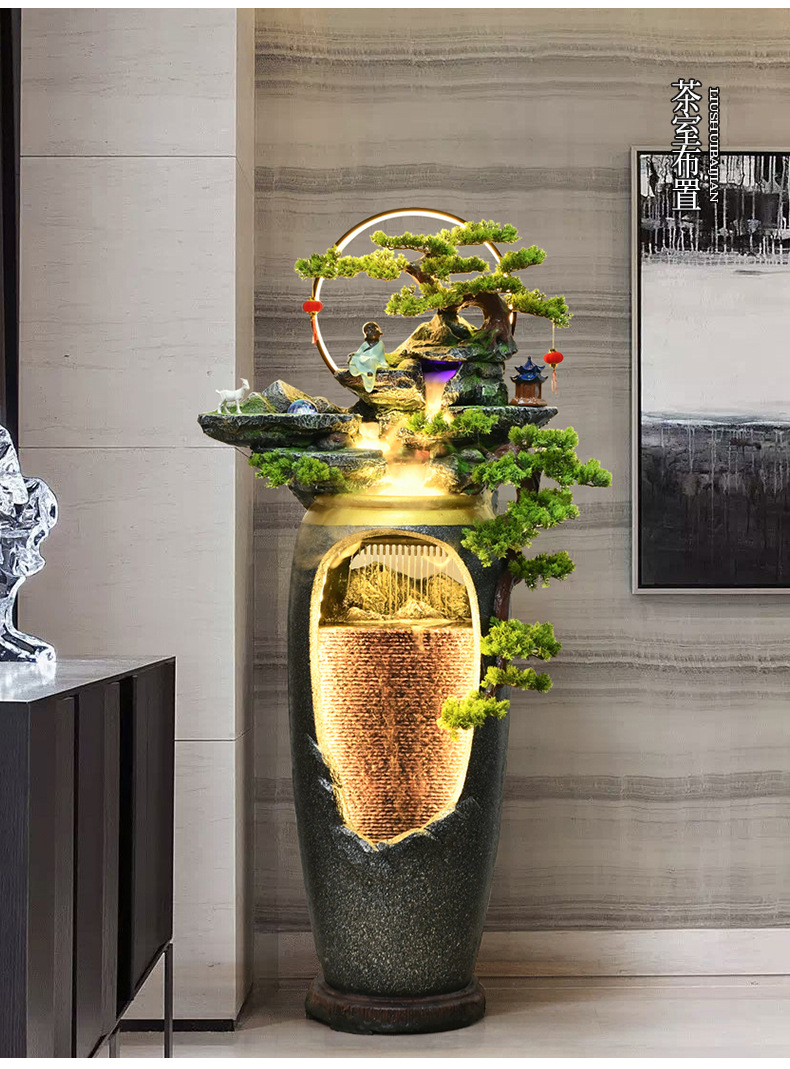새로운 중국 스타일의 물 분수 TV 캐비닛 옆에 가벼운 고급 바닥 선 홈 풍경 복도 거실 바위 장식스토어 가기