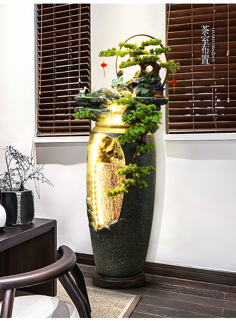 새로운 중국 스타일의 물 분수 TV 캐비닛 옆에 가벼운 고급 바닥 선 홈 풍경 복도 거실 바위 장식