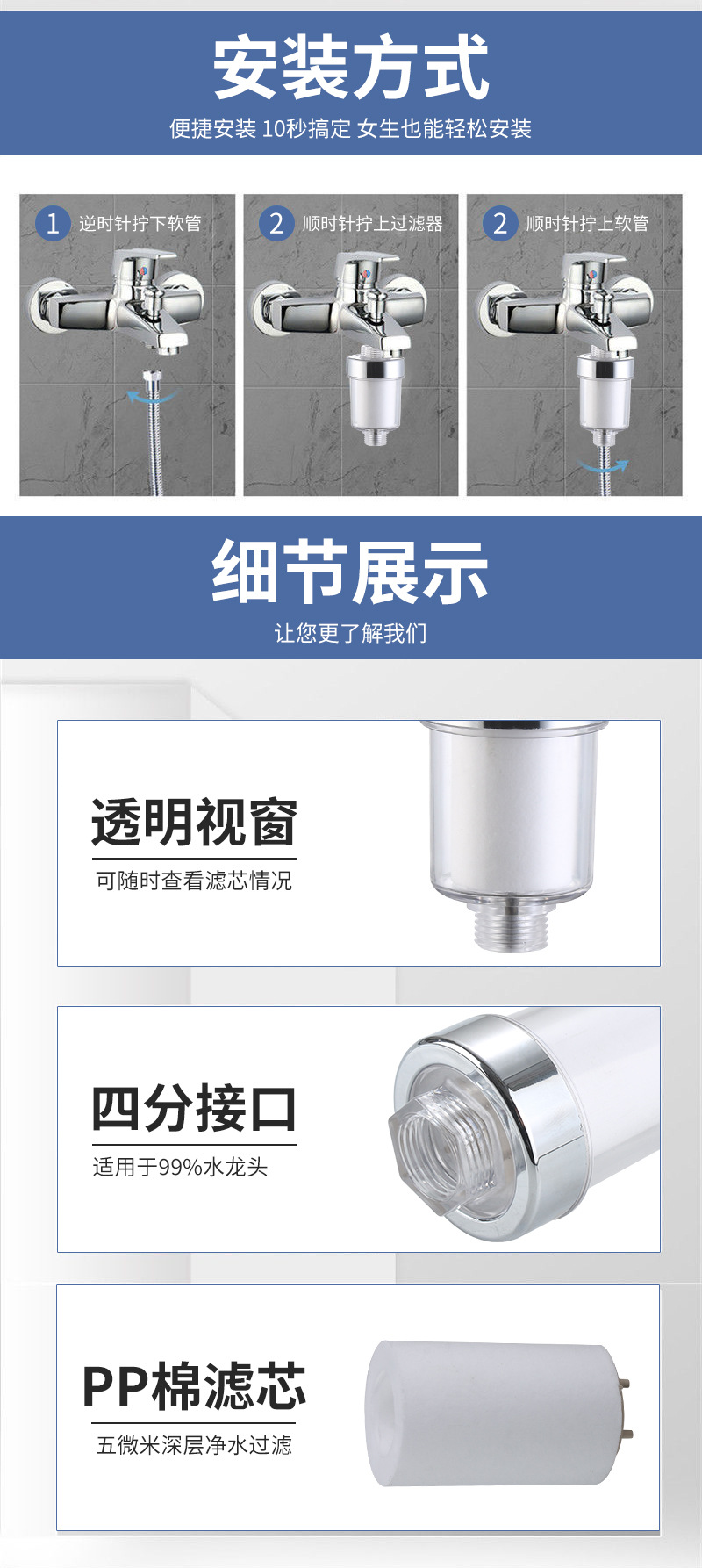 공장 직영 방수 수도꼭지 필터 탈염소 pp 면 수돗물 정수기 위생 가정용 물 필터 정수스토어 가기